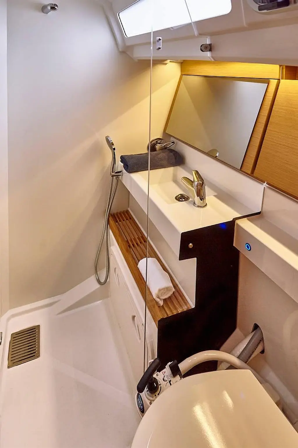 Dinghy, Inverter, Water maker, Sprayhood, Solar Panels, Teak Cockpit, Cockpit speakers, Outboard engine, Holding tank, Electric toilet, Cockpit cushions