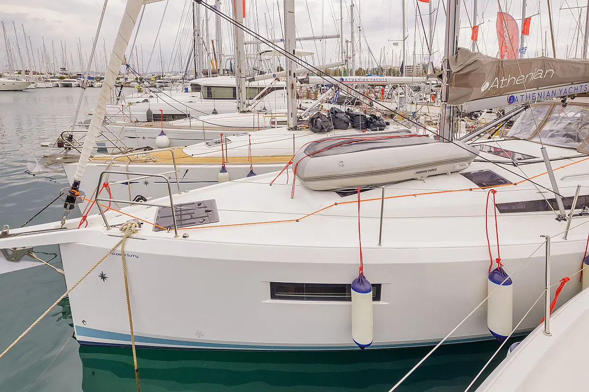 Dinghy, Outboard engine, Bimini, Cockpit cushions, Sprayhood, Teak Cockpit, Solar Panels, Refrigerator