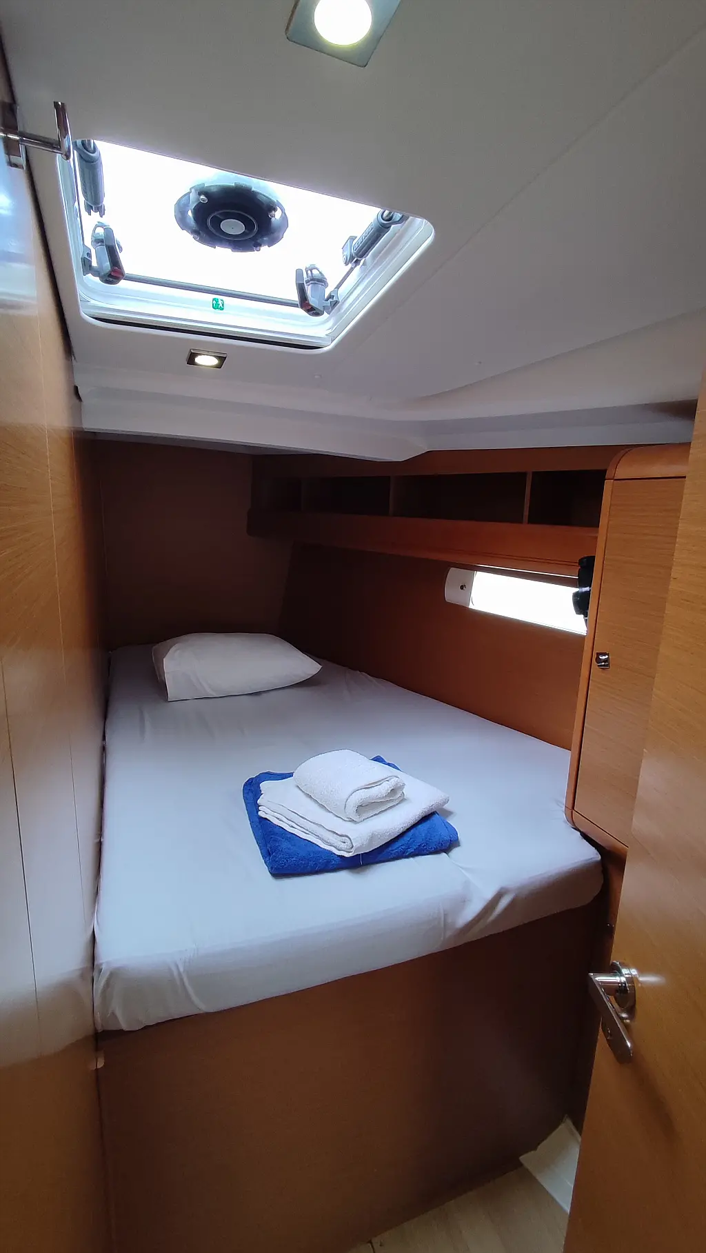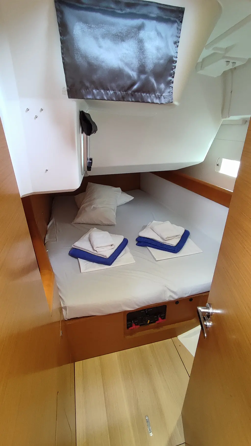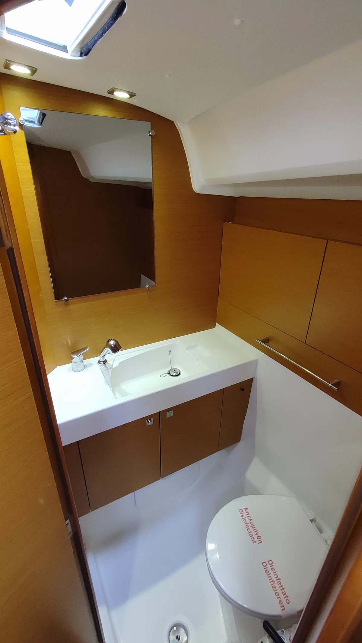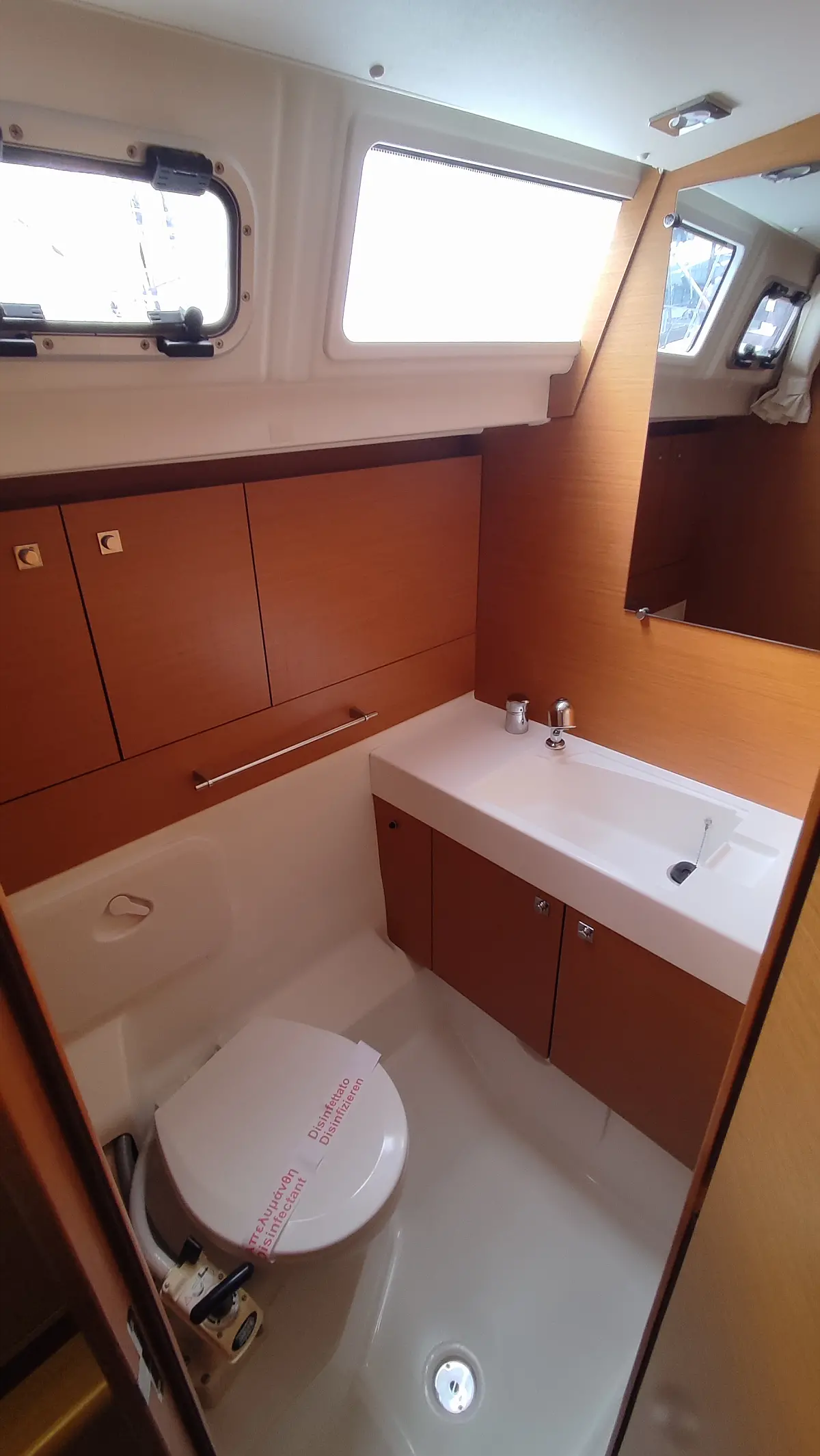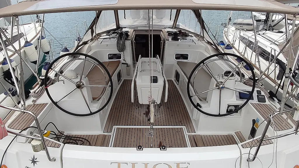 Cockpit speakers, Cockpit cushions, Refrigerator, Teak Cockpit, Swimming platform, Holding tank, Sprayhood, Dinghy, Bimini, Solar Panels, Inverter