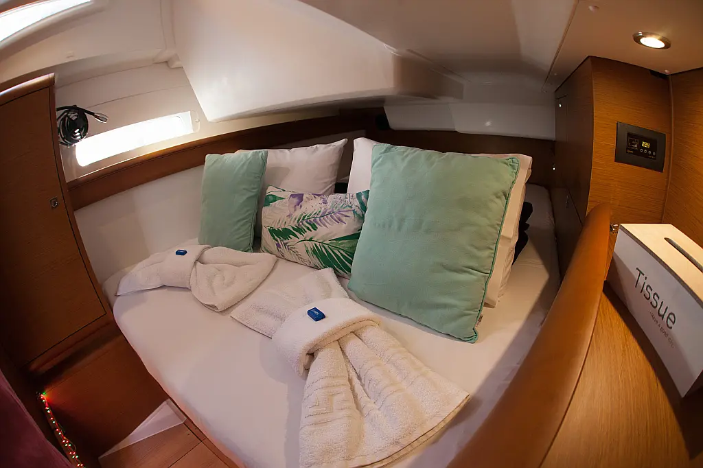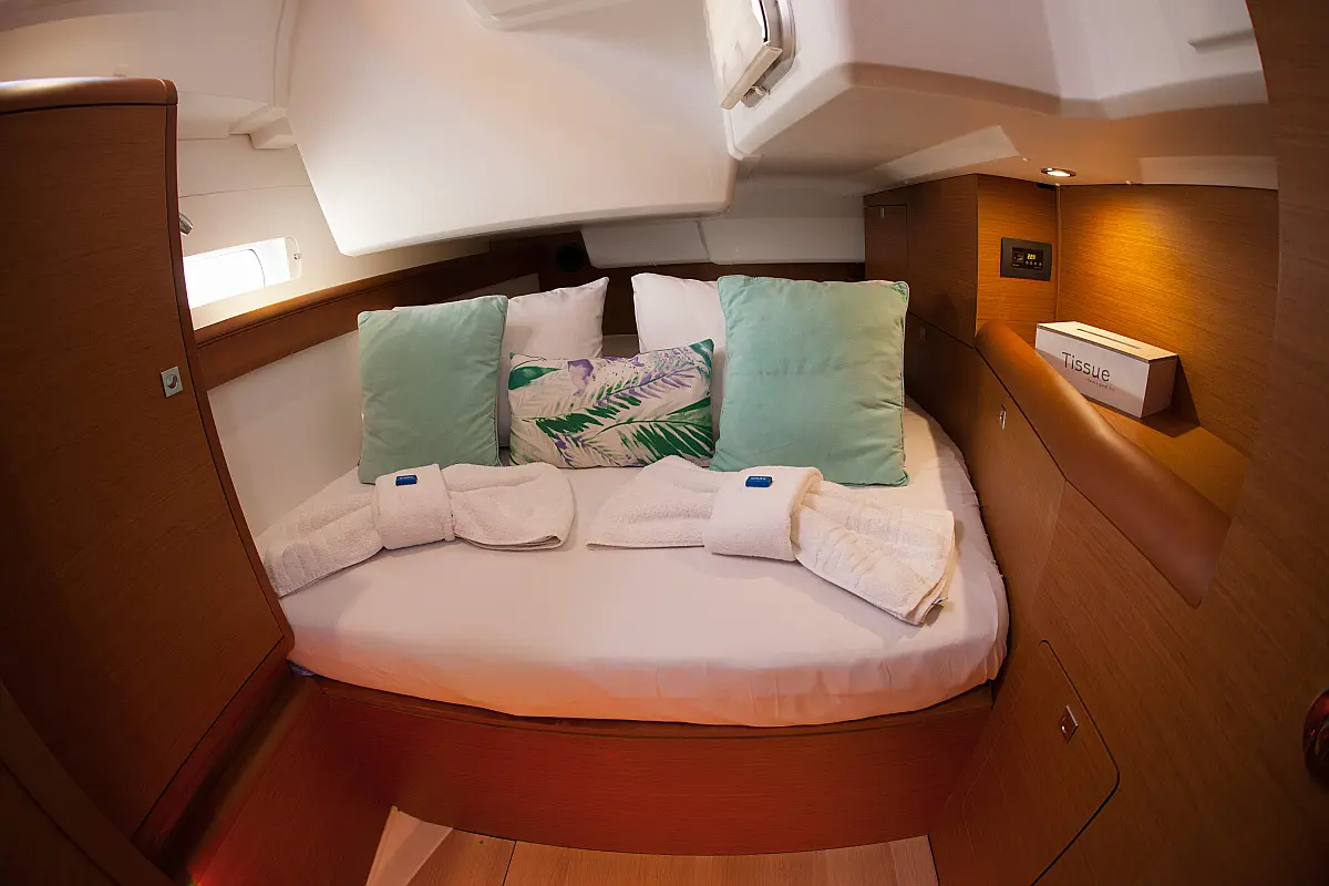Dinghy, Outboard engine, Bimini, Cockpit cushions, Sprayhood, Teak Cockpit, Air condition, Refrigerator, Electric toilet, Generator, Water maker