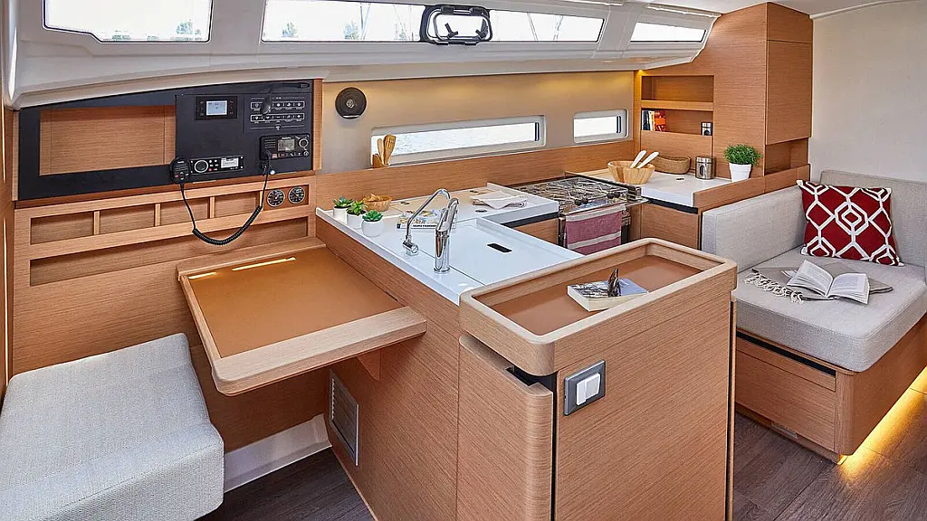 Refrigerator, Coffee maker, Bimini, Cockpit speakers, Cockpit cushions, Dinghy