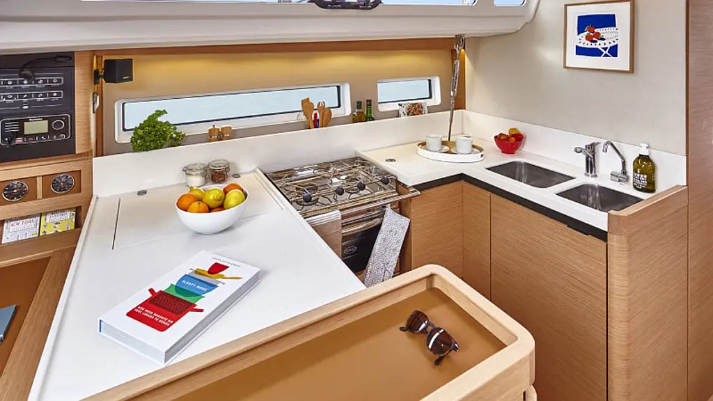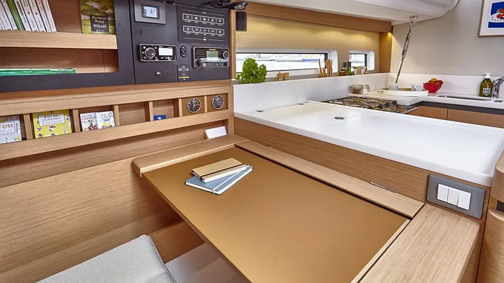 Refrigerator, Coffee maker, Bimini, Cockpit speakers, Cockpit cushions, Dinghy