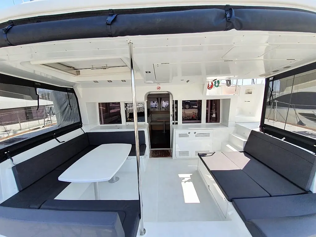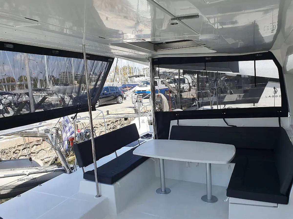 Electric toilet, Bimini, Hydraulic gangway, Dinghy, Outboard engine, Water maker