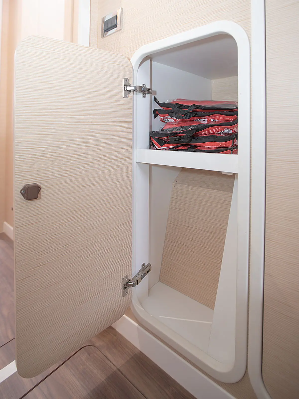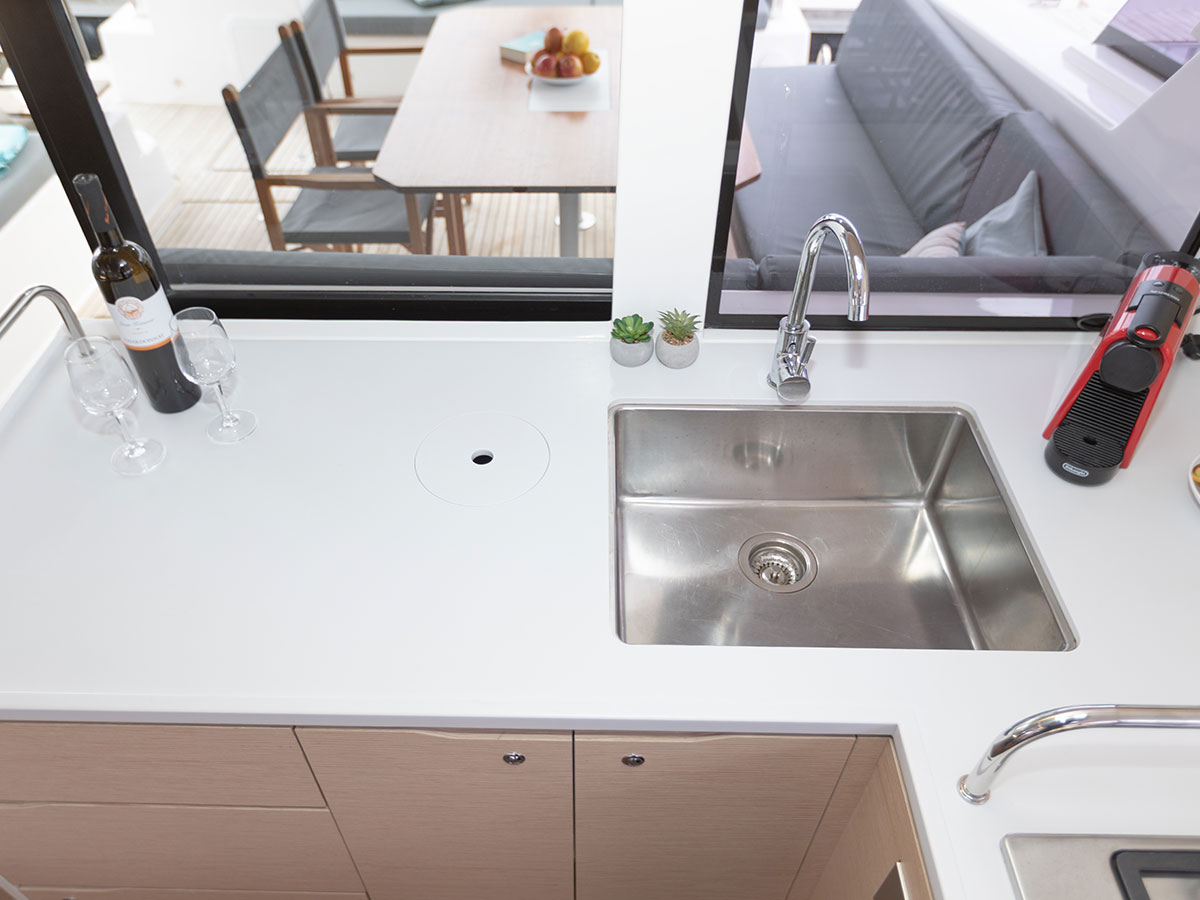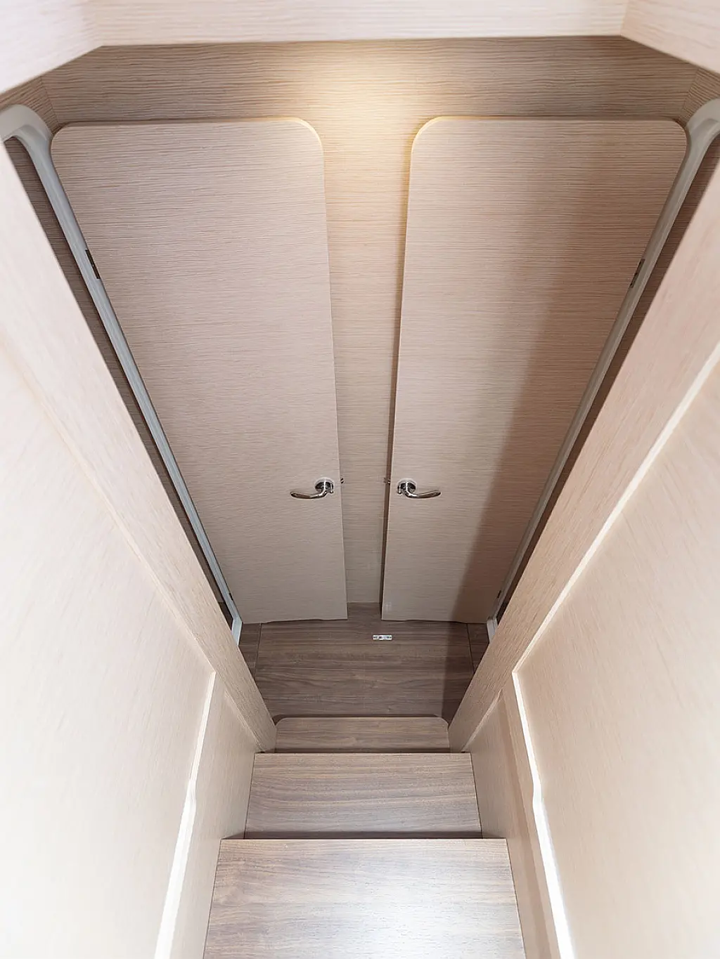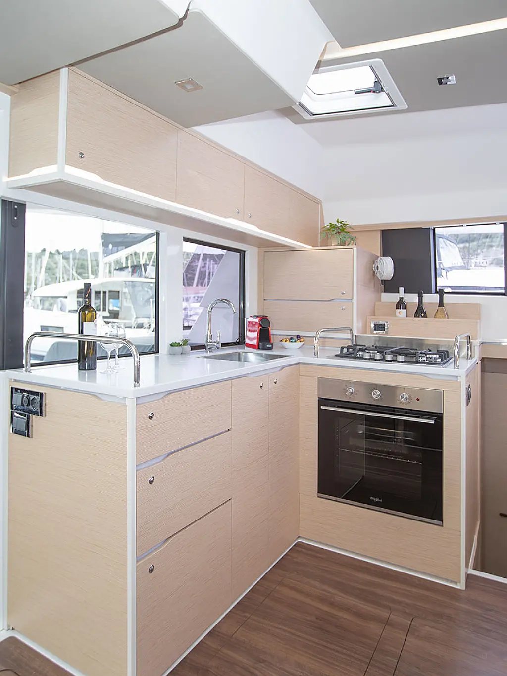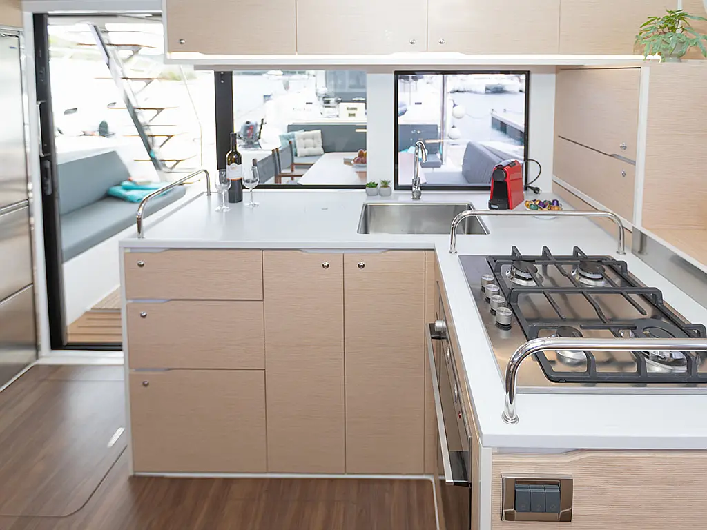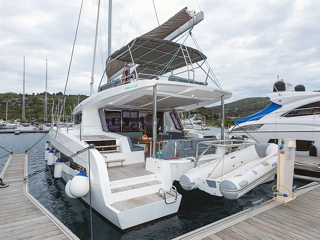Teak Cockpit, Cockpit cushions, Teak deck, Flybridge, Refrigerator, Coffee maker, Ice maker, Generator, Air condition, Solar Panels, Inverter, Water maker, Electric winches