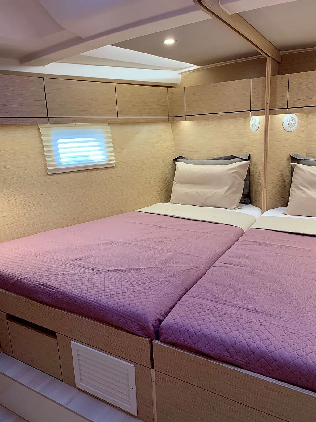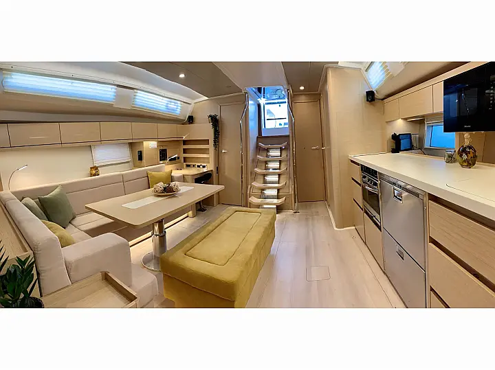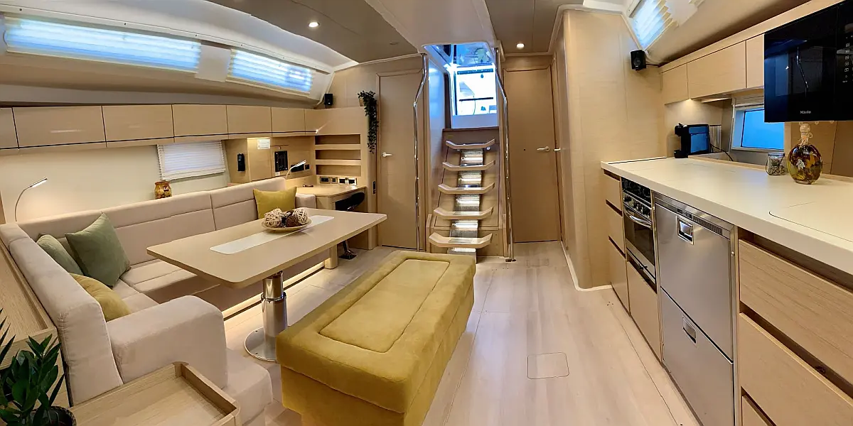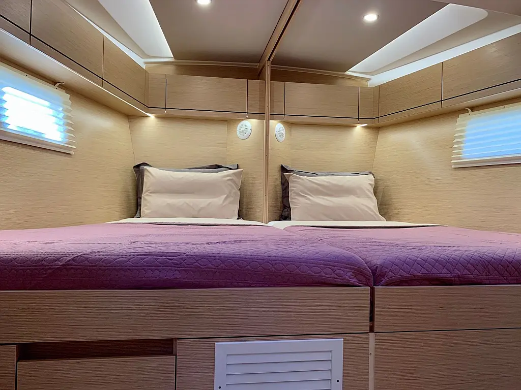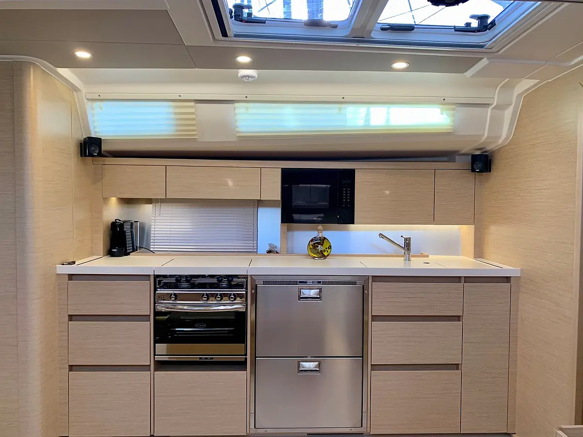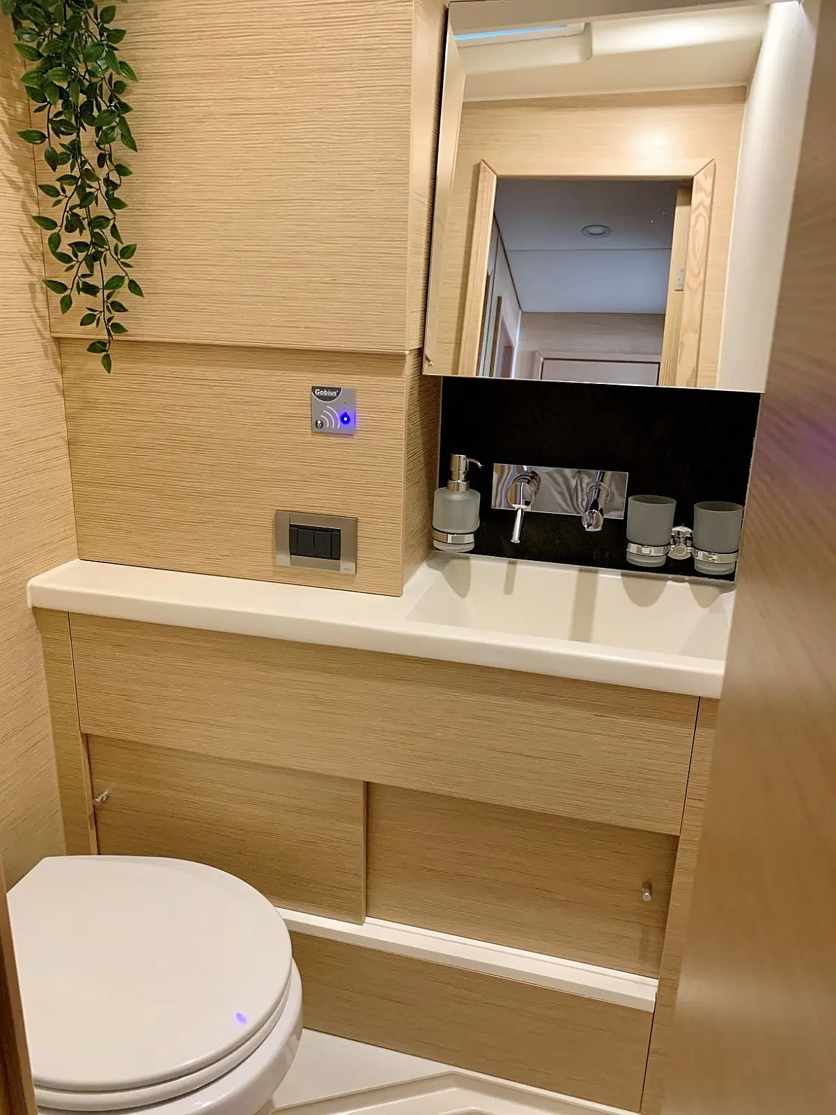 Air condition, Bimini, Generator, Sprayhood, Electric winches, Dinghy, Outboard engine, Cockpit cushions, Barbecue grill in cockpit, Refrigerator, Electric toilet, Inverter, Water maker, Wi-Fi & Internet, Coffee maker, Holding tank, Ice maker