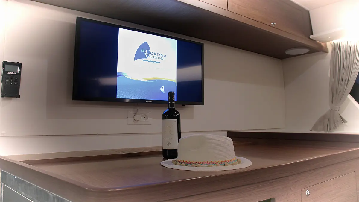 Cockpit speakers, Swimming platform, Bimini, Dinghy, Outboard engine, Coffee maker, Water maker, Solar Panels, Generator, Inverter, Air condition, Electric toilet, Cockpit cushions, Hydraulic gangway