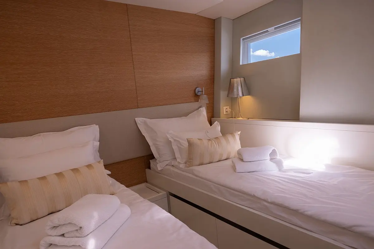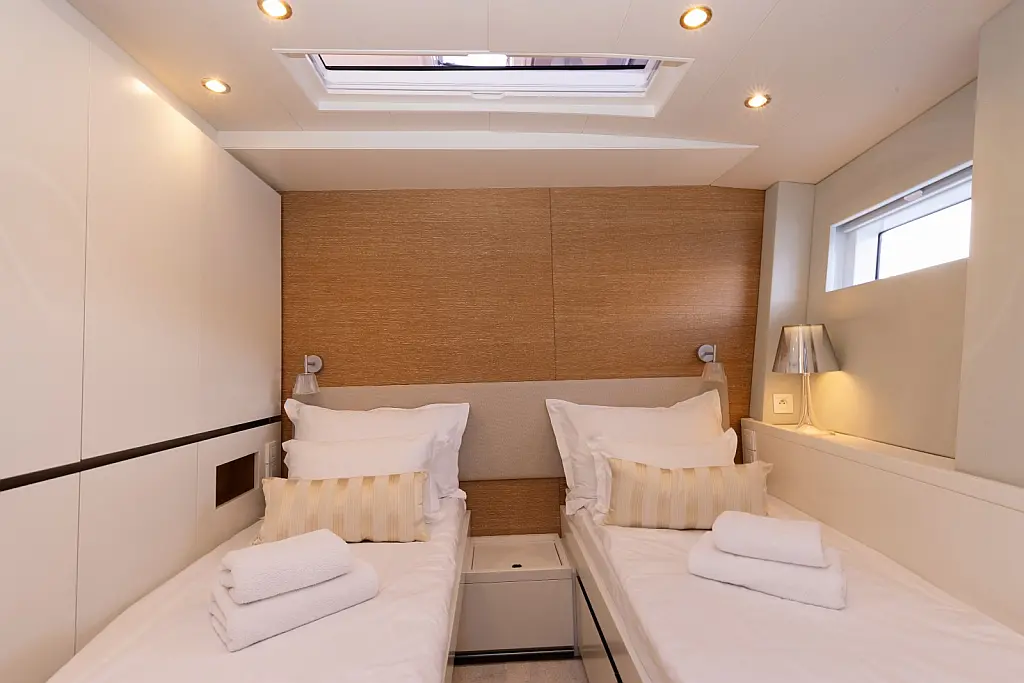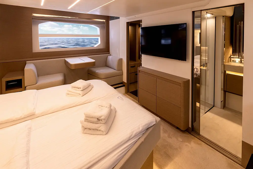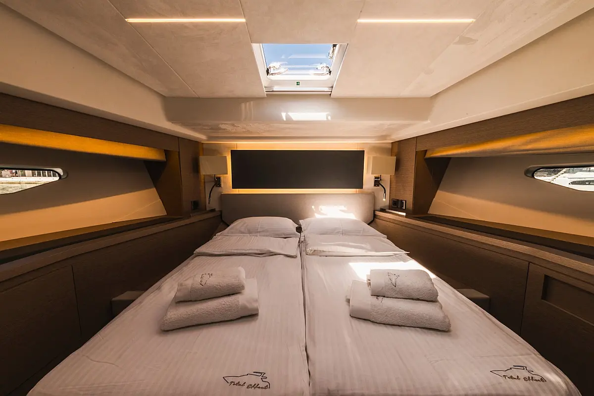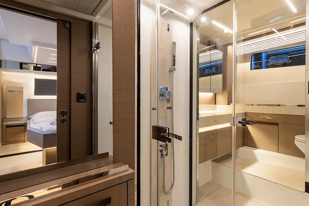 Teak Cockpit, Teak deck, Dinghy, Hydraulic gangway, Electric toilet, Inverter, Heating, Air condition, Generator, Refrigerator