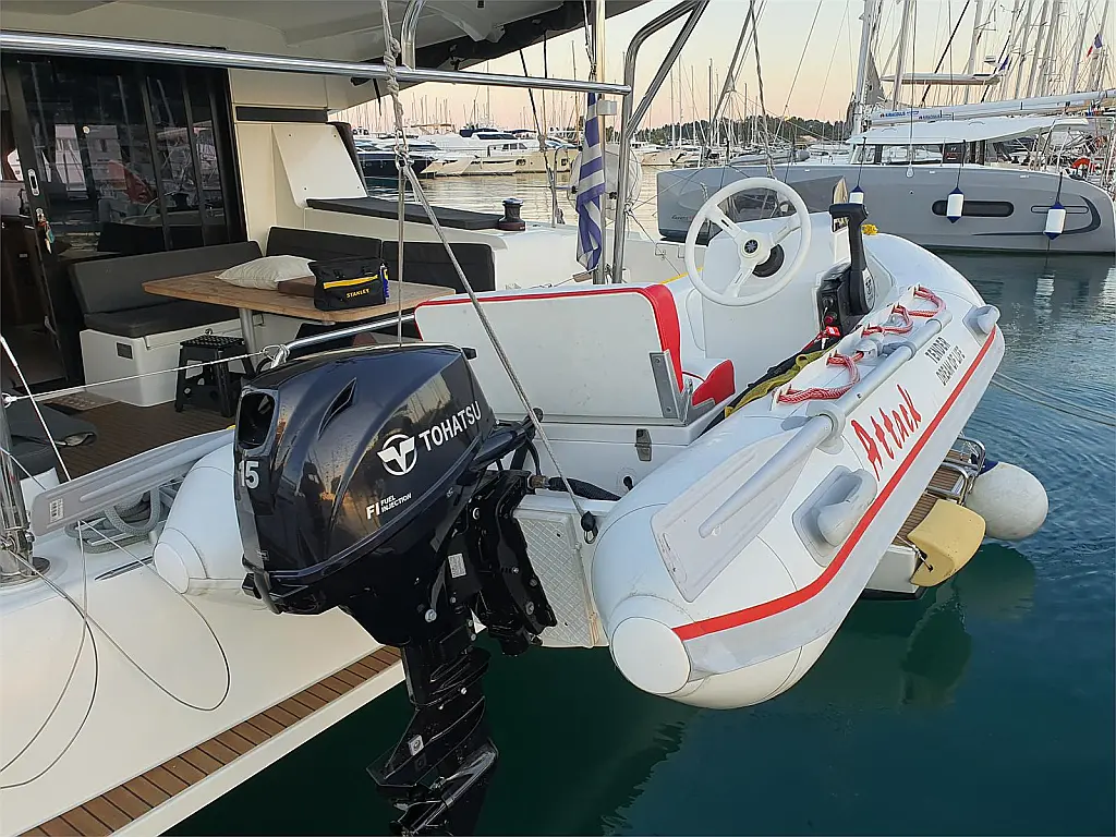 Coffee maker, Refrigerator, Generator, Bimini, Sprayhood, Dinghy, Heating, Air condition, Cockpit cushions, Solar Panels