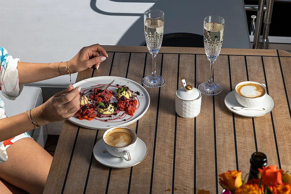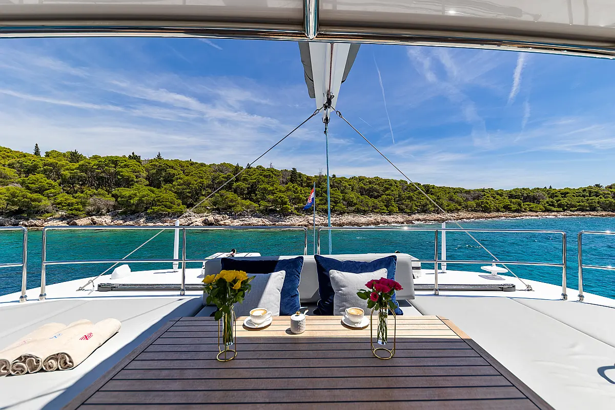 Teak deck, Cockpit cushions, Outboard engine, Refrigerator, Teak Cockpit, Dinghy, Heating, Generator, Water maker, Cockpit speakers, Wi-Fi & Internet, Electric toilet, Ice maker