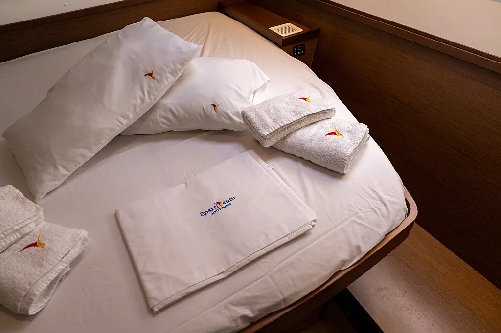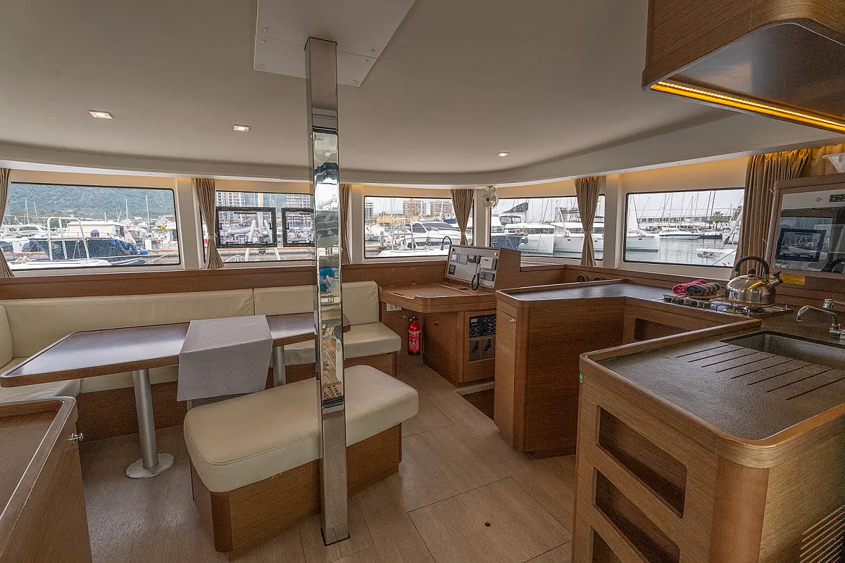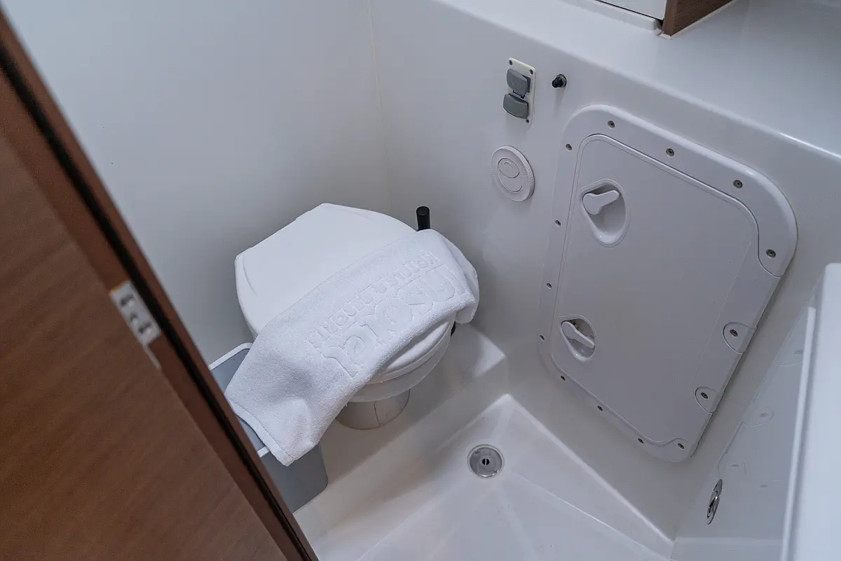 Dinghy, Outboard engine, Electric winches, Air condition, Inverter, Cockpit cushions, Water maker, Generator, Electric toilet, Refrigerator