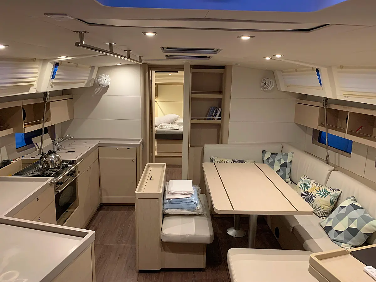 Dinghy, Outboard engine, Sprayhood, Generator, Bimini, Electric winches, Solar Panels, Air condition, Hydraulic gangway, Wi-Fi & Internet, Refrigerator, Cockpit cushions
