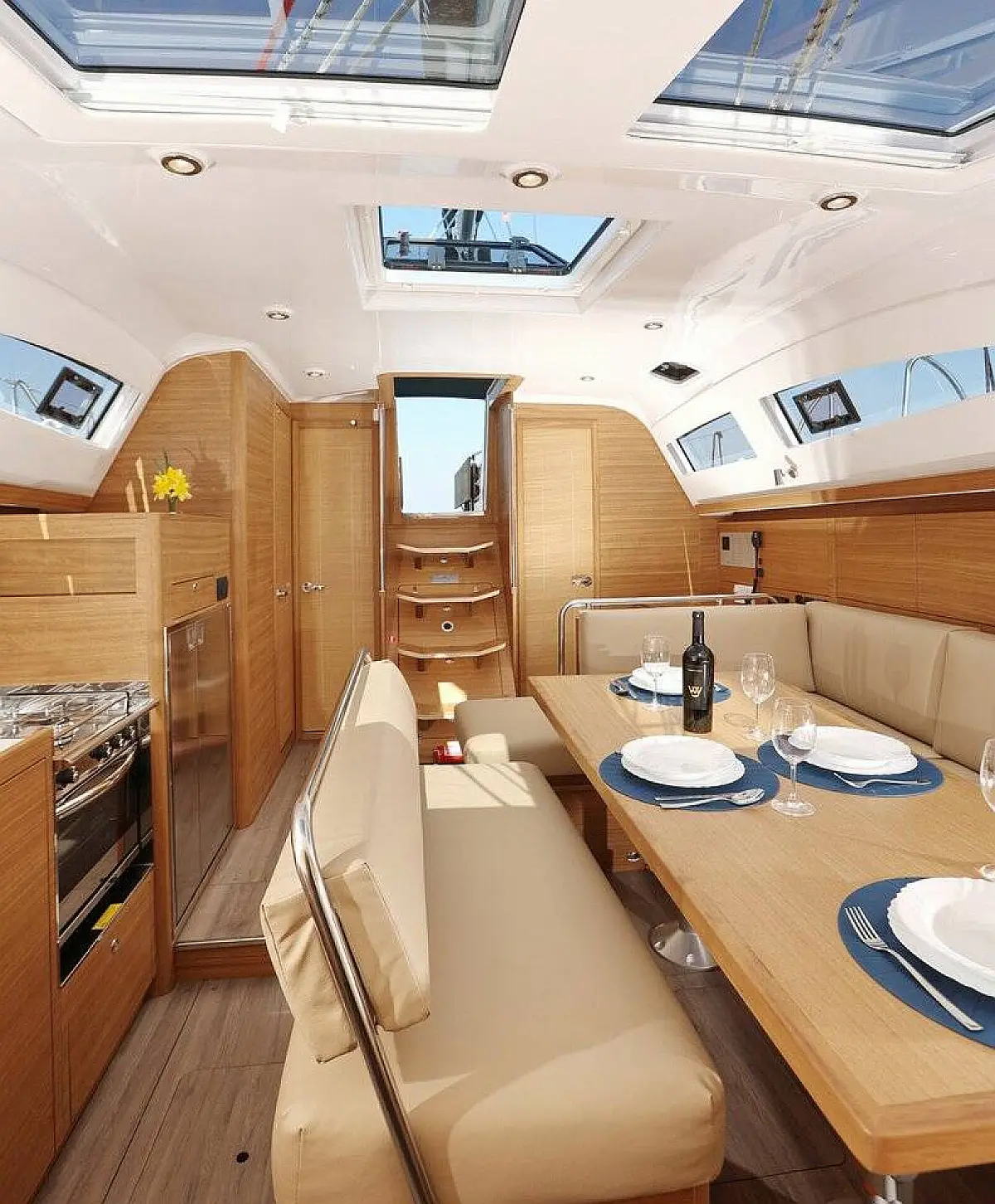 Cockpit speakers, Barbecue grill in cockpit, Refrigerator, Cockpit cushions, Teak Cockpit, Solar Panels, Swimming platform, Bimini, Sprayhood, Heating, Air condition, Electric winches, Dinghy, Inverter