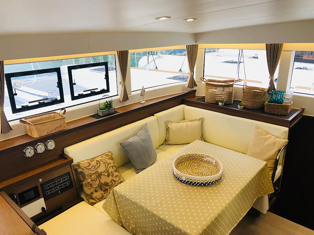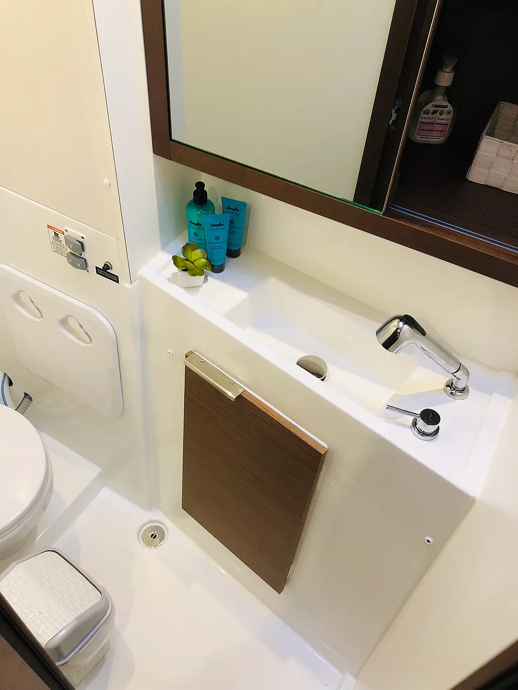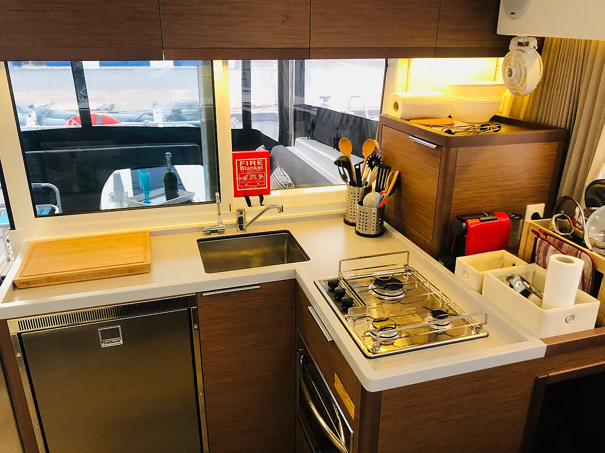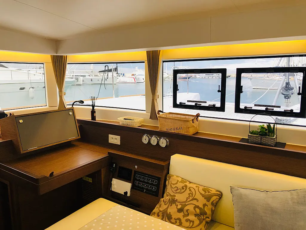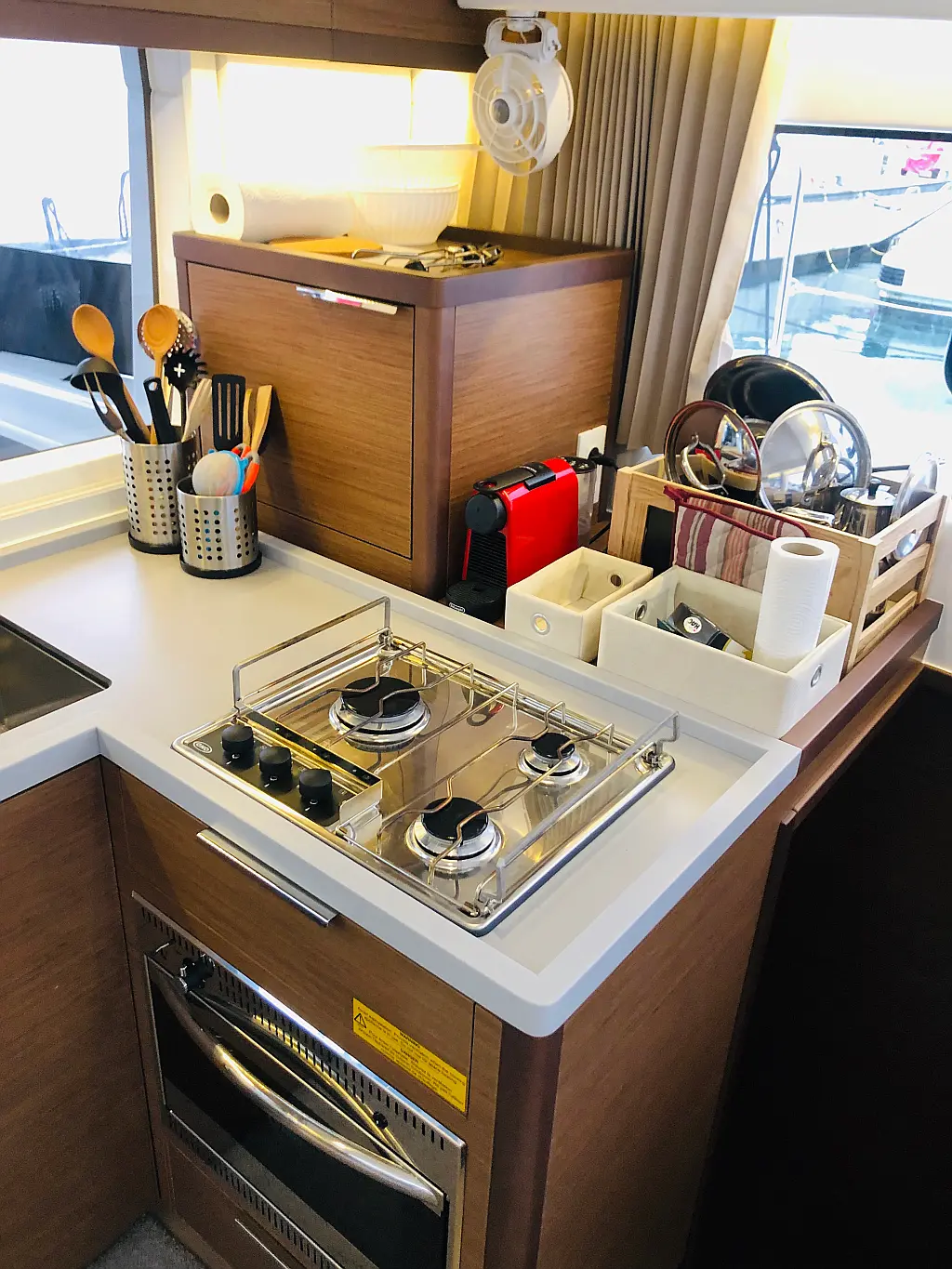 Bimini, Inverter, Cockpit speakers, Teak deck, Dinghy, Electric toilet, Refrigerator