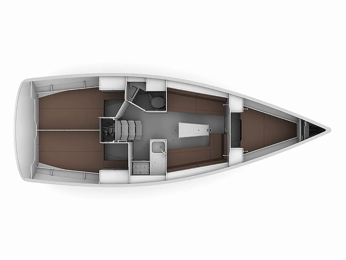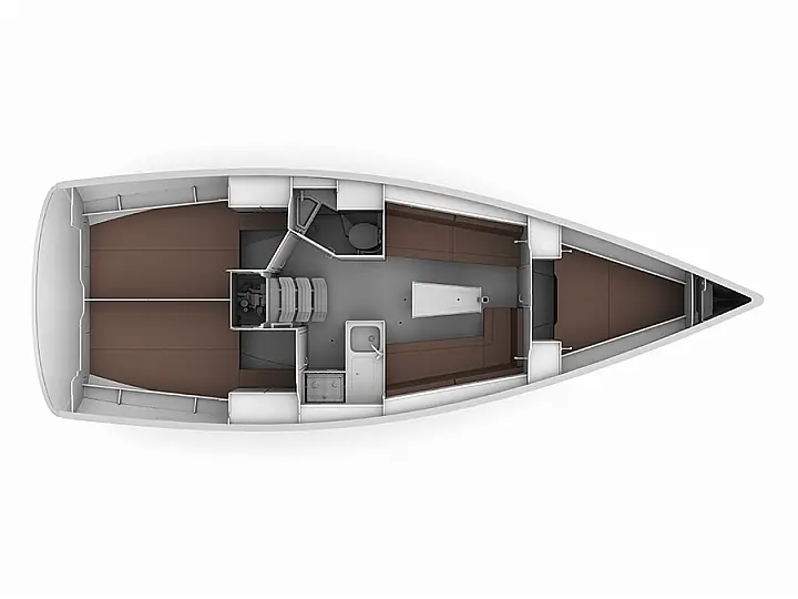 Cockpit speakers, Bimini, Swimming platform, Refrigerator, Dinghy, Sprayhood