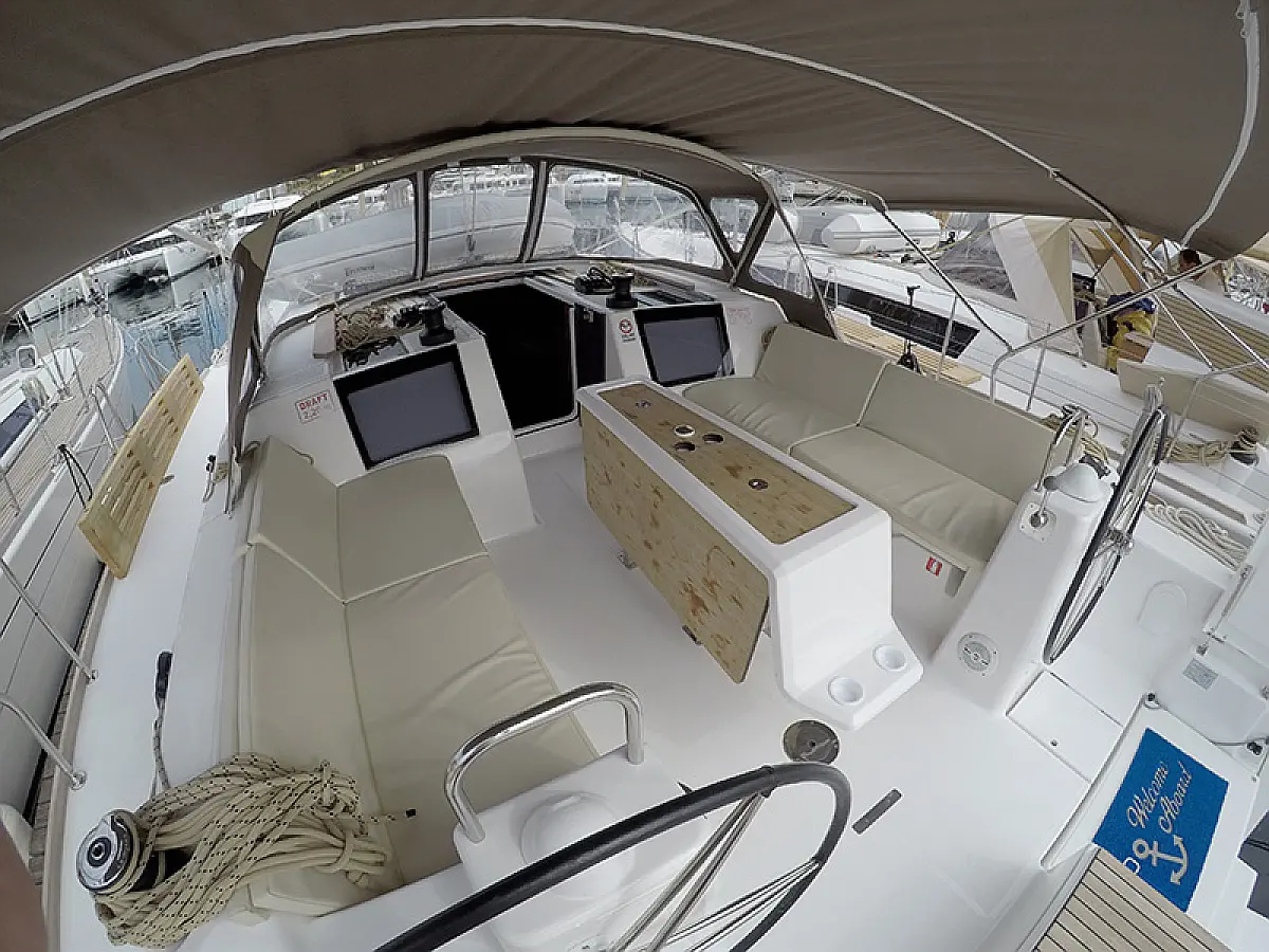 Heating, Barbecue grill in cockpit, Refrigerator, Cockpit cushions, Sprayhood, Outboard engine, Dinghy, Wi-Fi & Internet