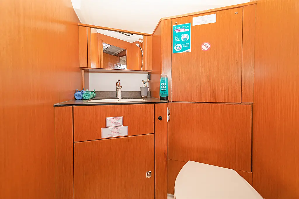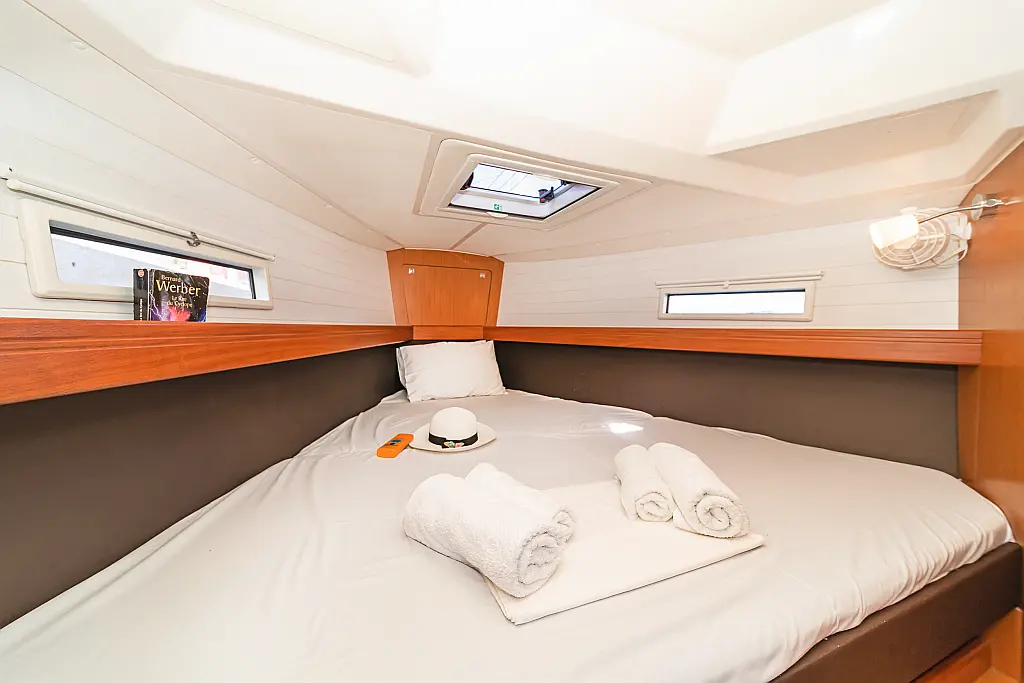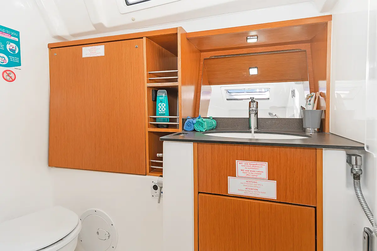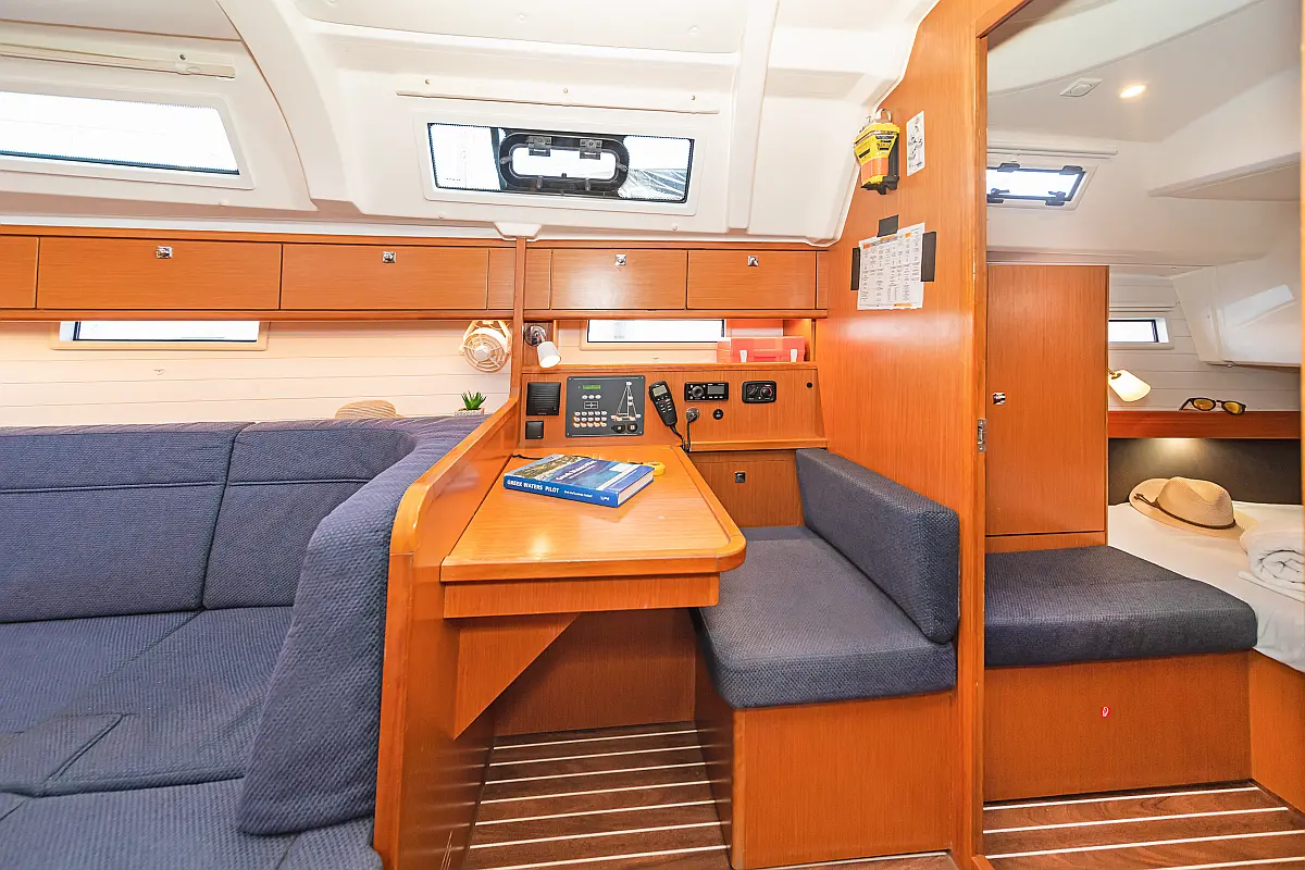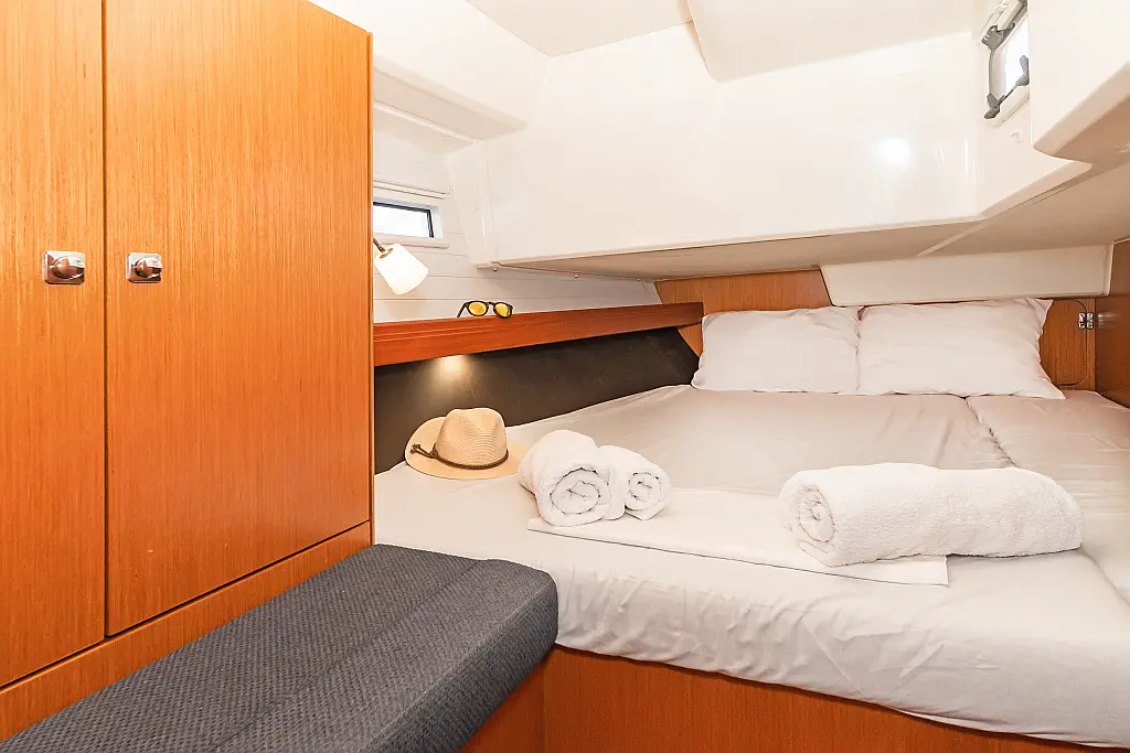 Sprayhood, Bimini, Pomoćni čamac, Inverter, Električni WC, Hladnjak, Jastuci u kokpitu, Solarni paneli, Zvučnici u kokpitu