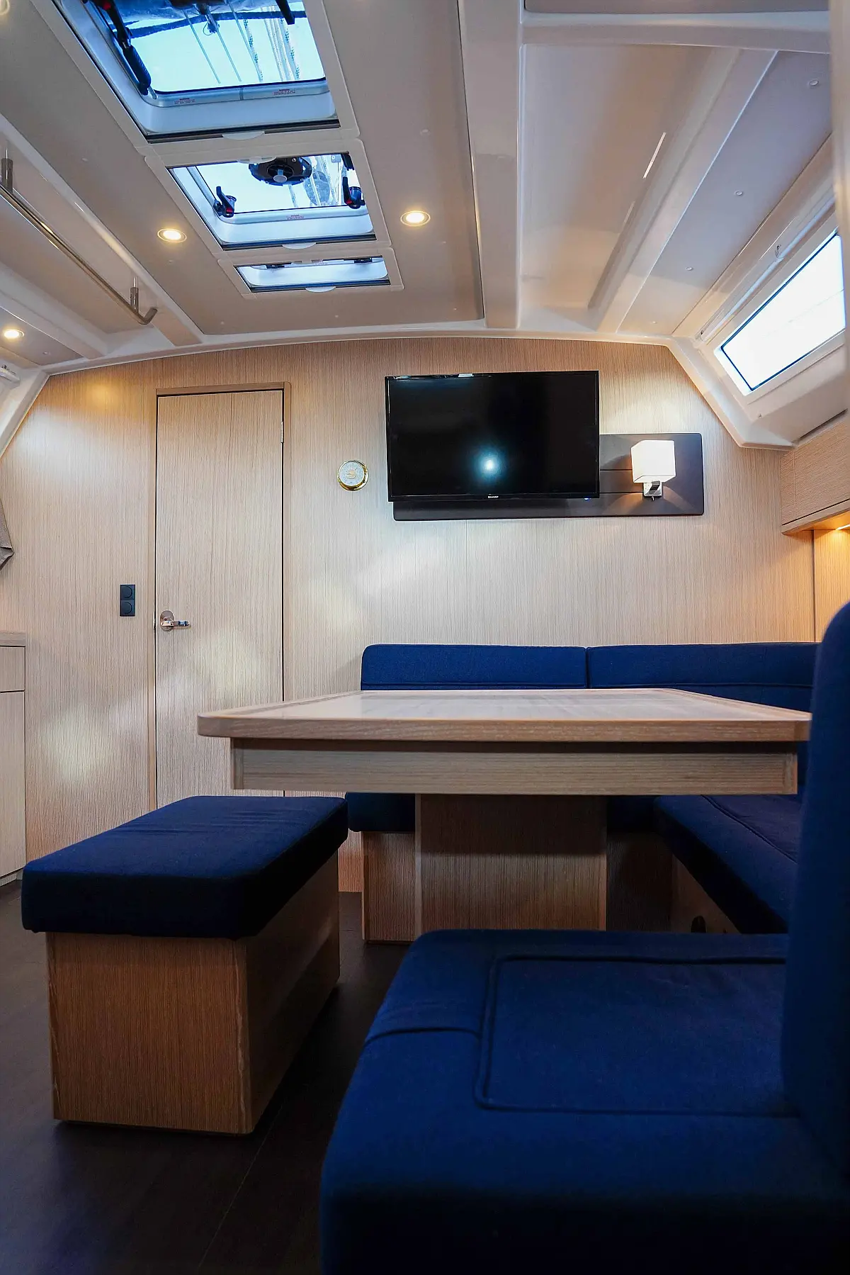 Jastuci u kokpitu, Klima, Generator, Bimini, Pomoćni čamac, Sprayhood, Hladnjak, Električni WC, Zvučnici u kokpitu
