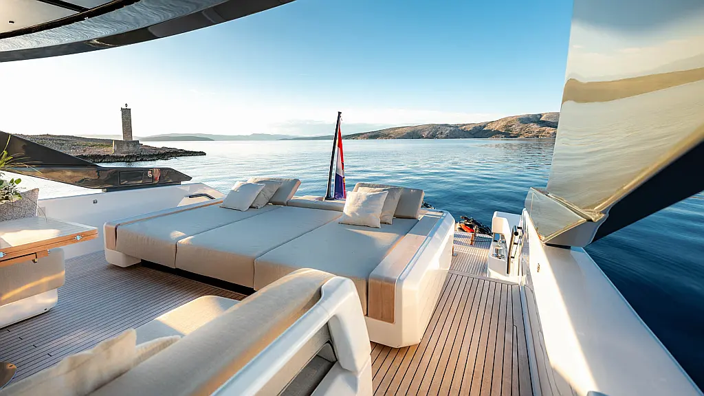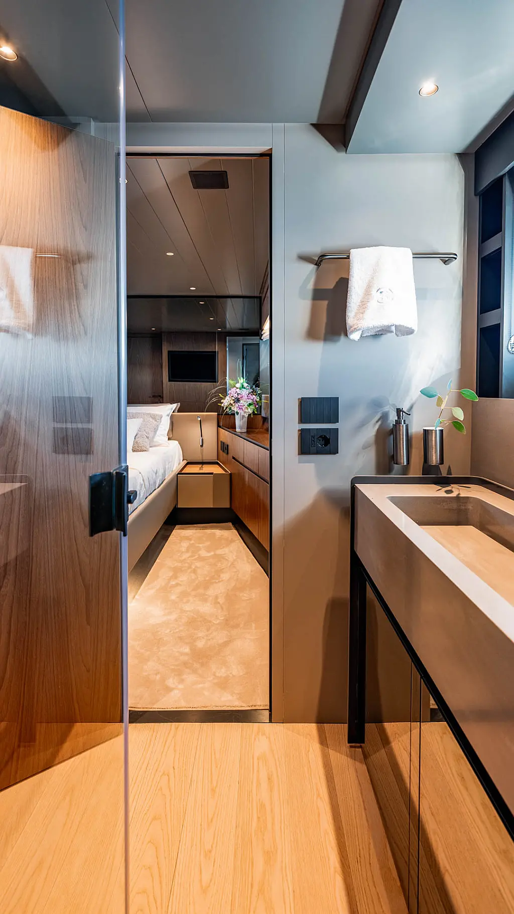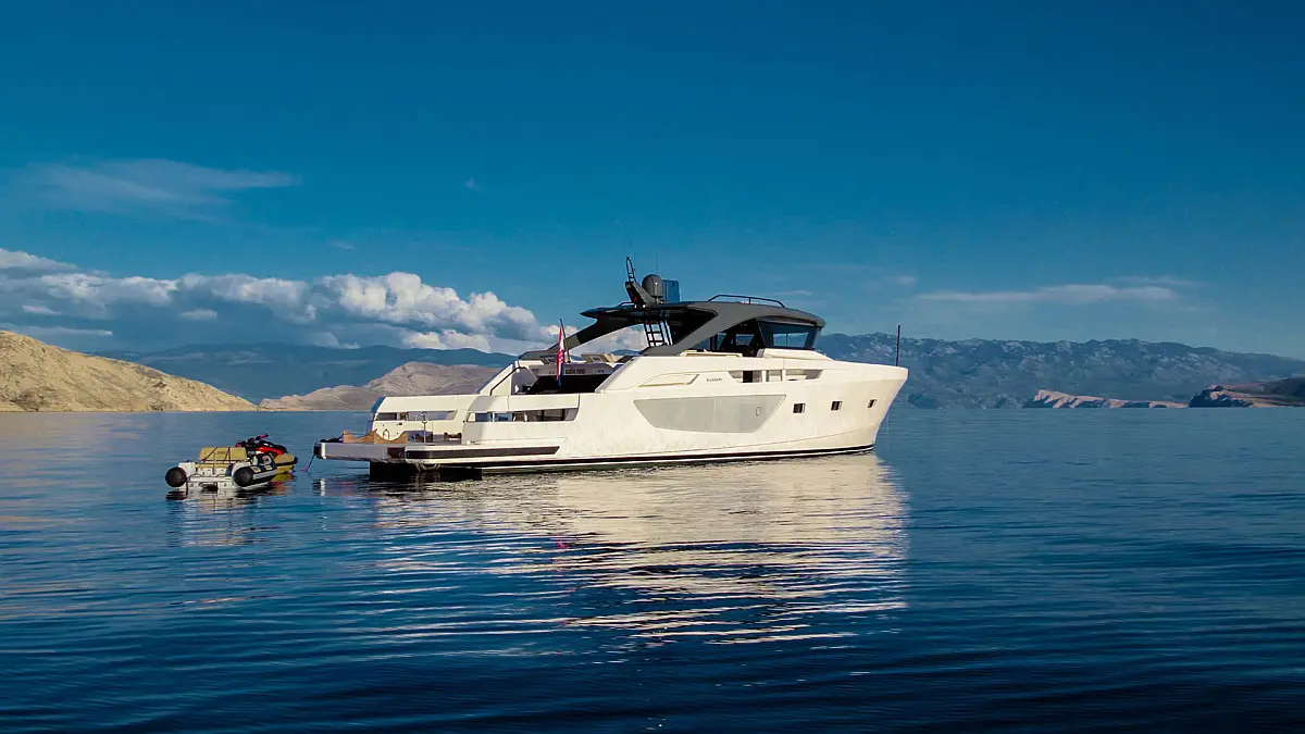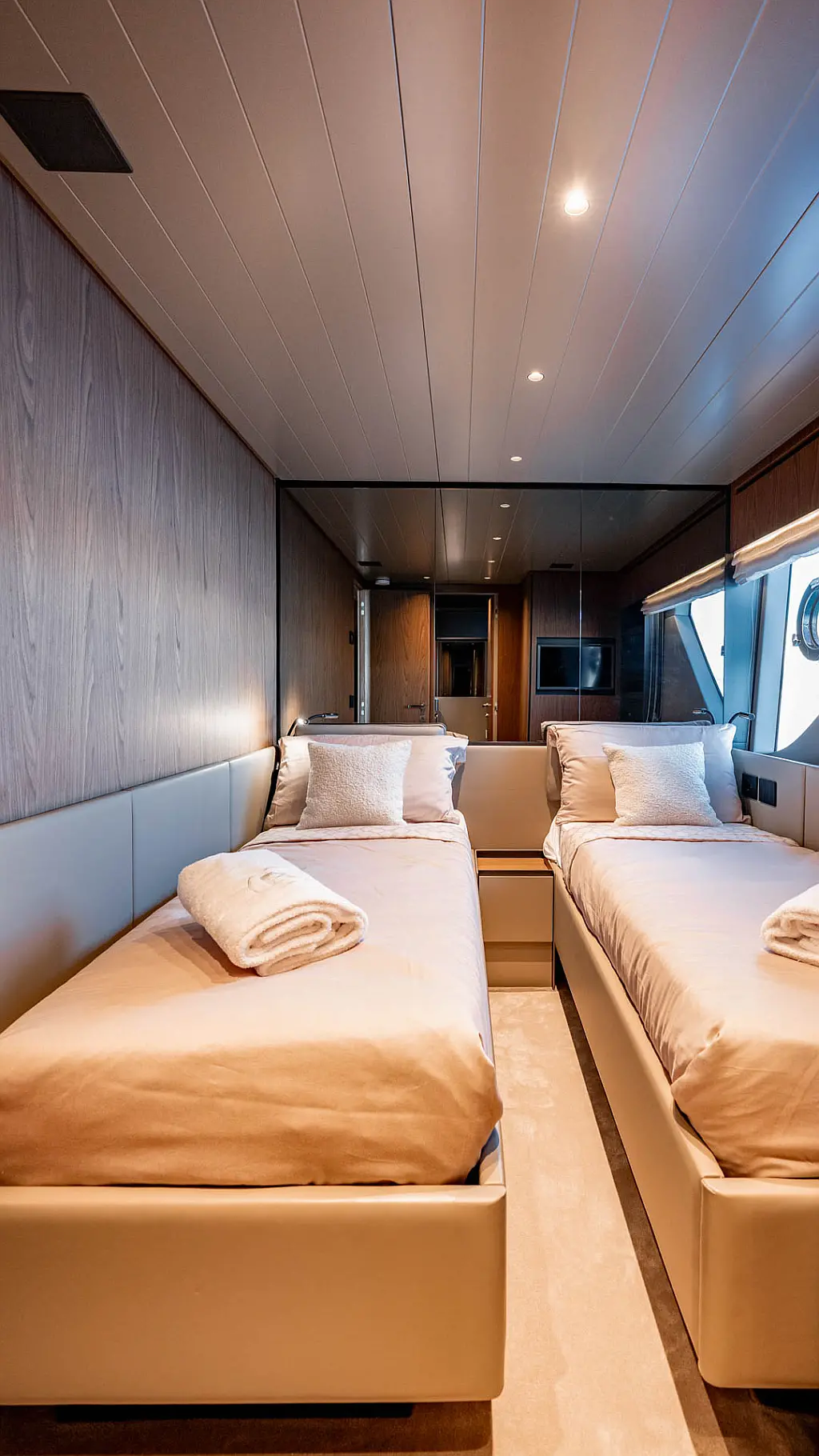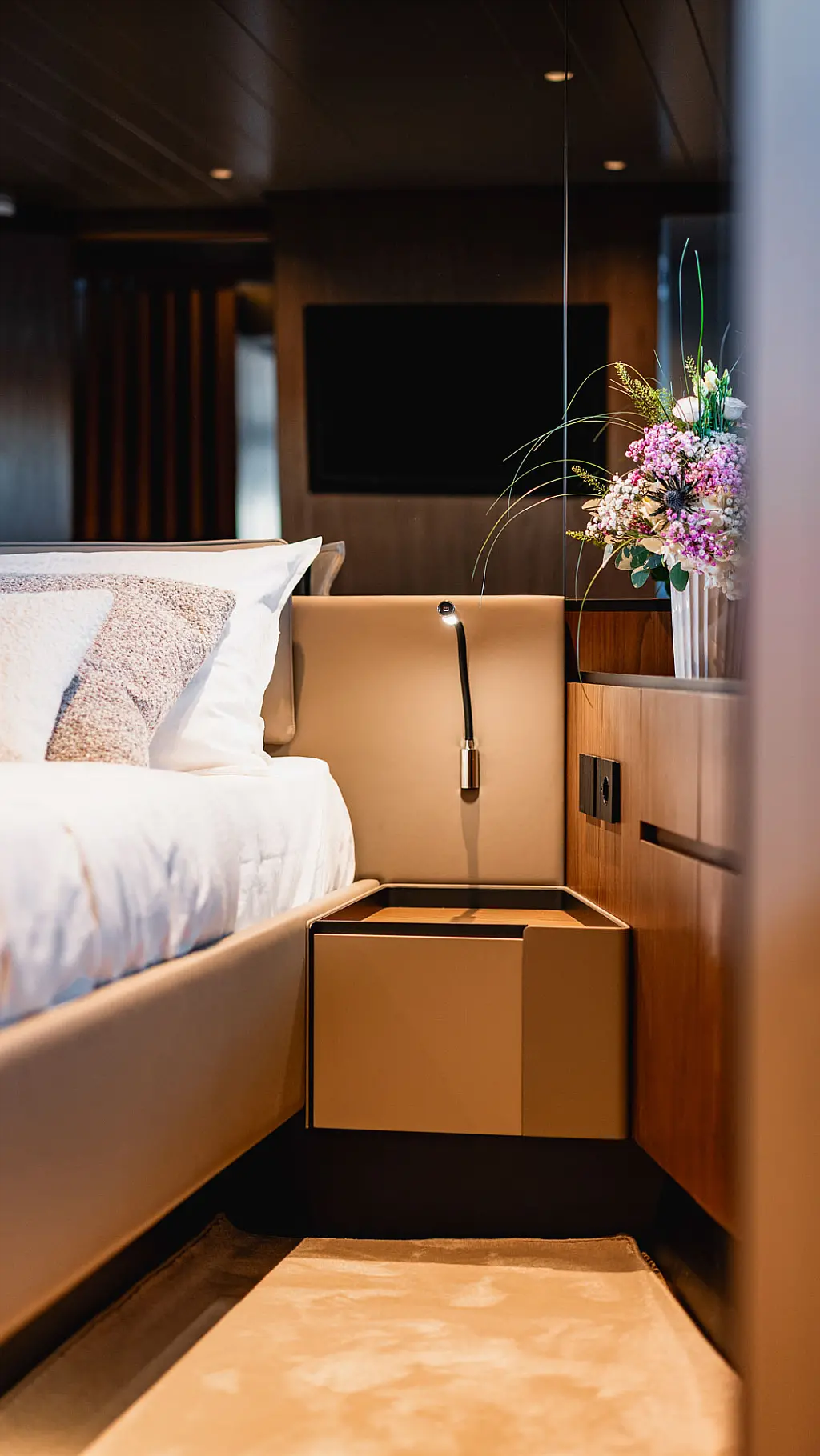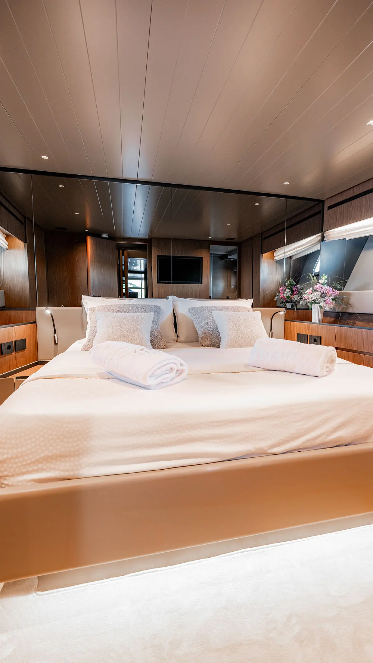 75 ft | Dužina 3 Kabine 6 Ležajevi 3 Heads Tehničke karakteristike Gaz: 5 ft | Motor: N/A Rezervoar za vodu: 1000.00 l Glavno jedro: None Istisnina: 49000.00 kg Rezervoar za vodu: 4000.00 l Širina: 18 ft | Genoa: None Oprema Zabava: Oprema za ronjenje na dah Udobnost: Pomoćni čamac, Klima, Wi-Fi i internet, Generator, Flybridge Dokumenti Brošure