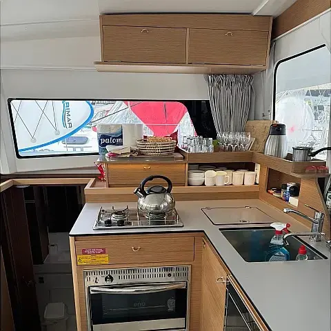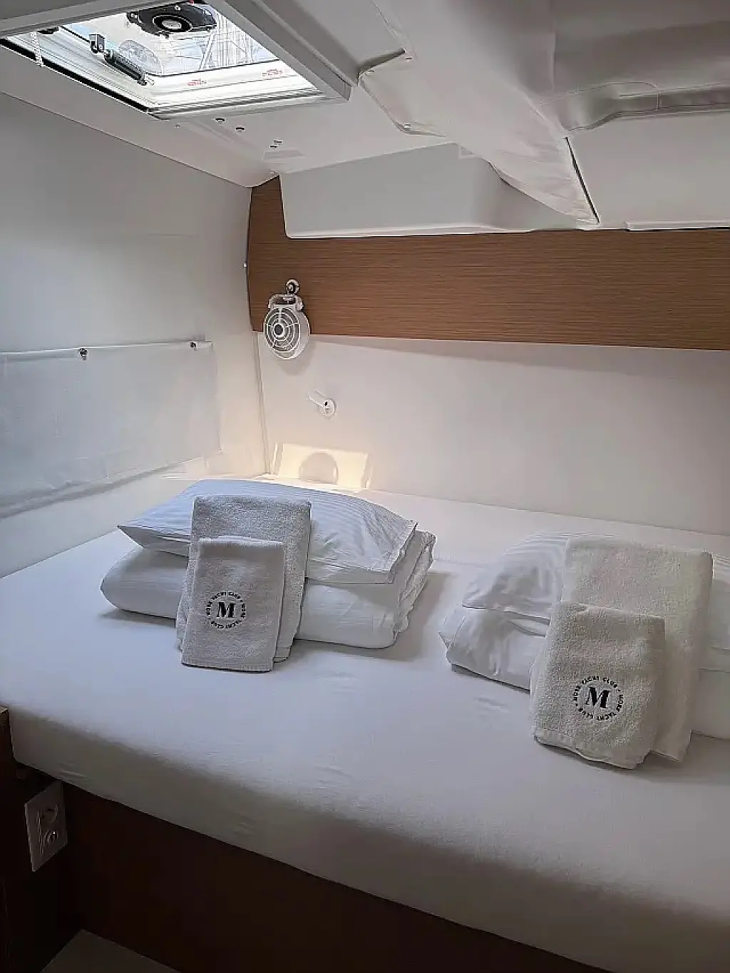 Klima, Bimini, Jastuci u kokpitu, Zvučnici u kokpitu, Aparat za kavu, Hladnjak, Električni WC, Generator, Grijanje, Crni tank, Inverter, Vanbrodski motor, Solarni paneli, Wi-Fi i internet