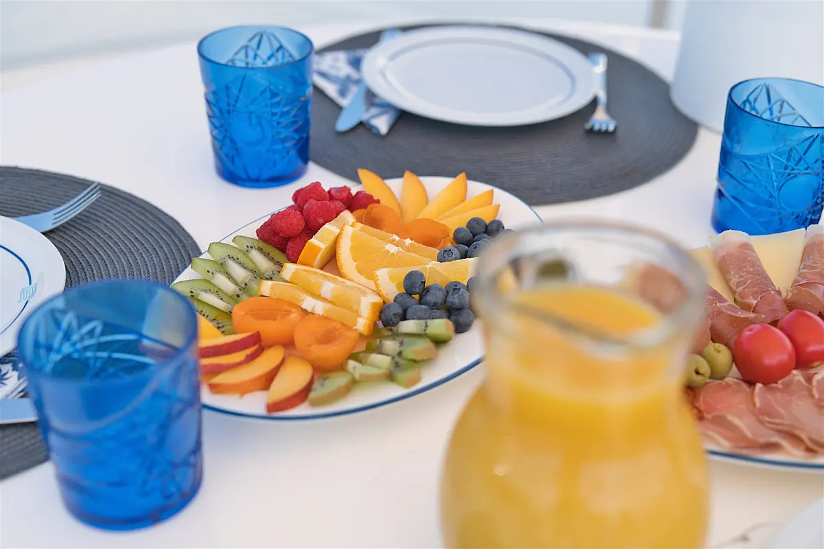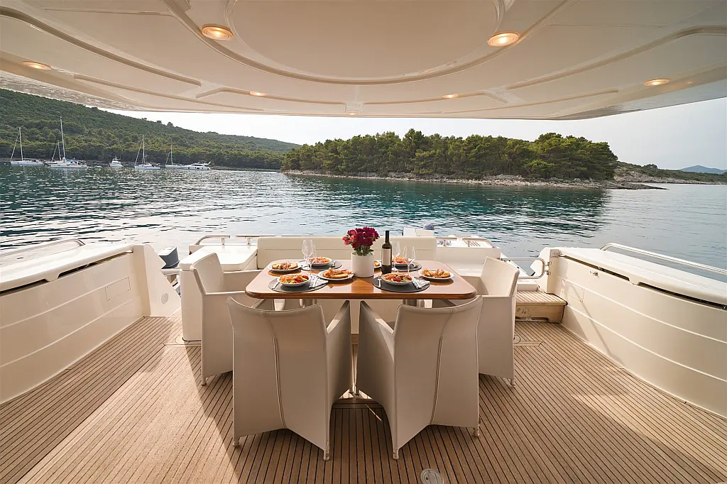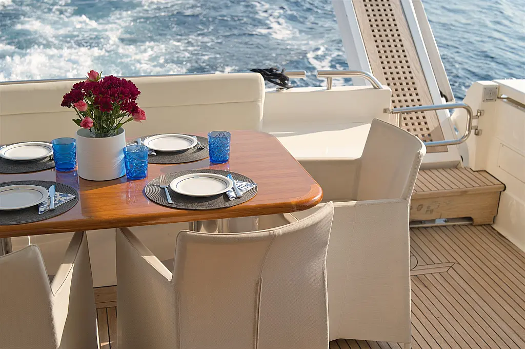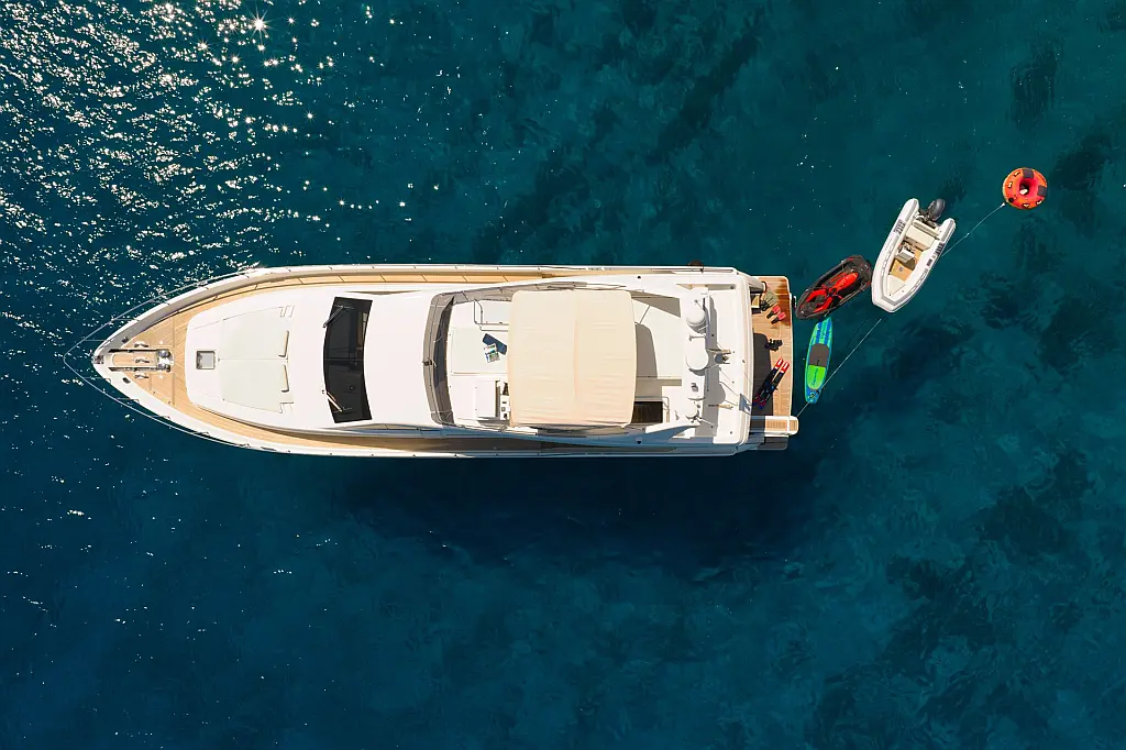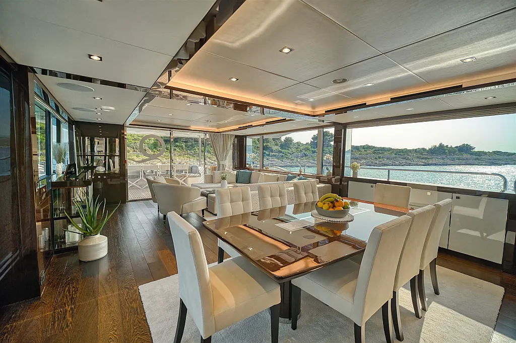 Wi-Fi i internet, Klima, Ledomat, Perilica posuđa, Perilica rublja/sušilica, Desalinizator, Flybridge, Platforma za plivanje, Pomoćni čamac