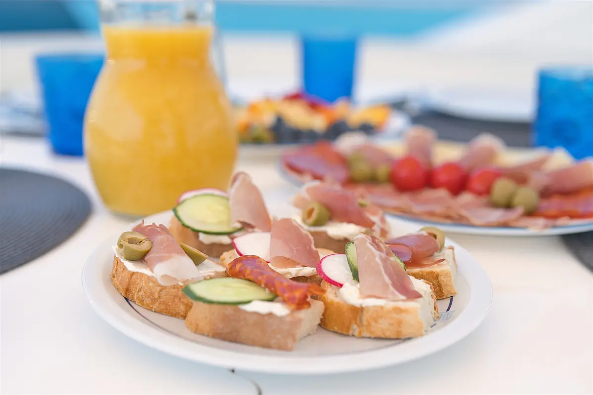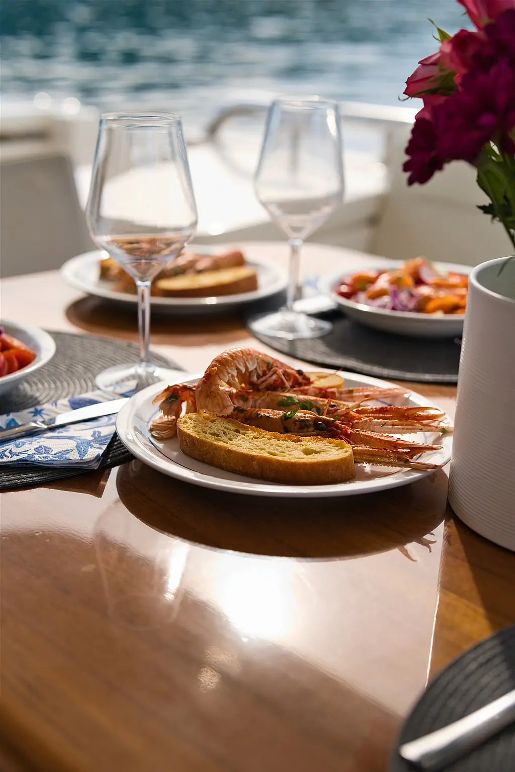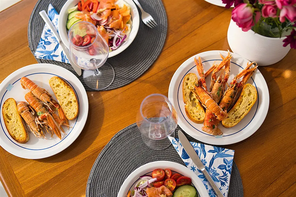 Wi-Fi i internet, Klima, Ledomat, Perilica posuđa, Perilica rublja/sušilica, Desalinizator, Flybridge, Platforma za plivanje, Pomoćni čamac