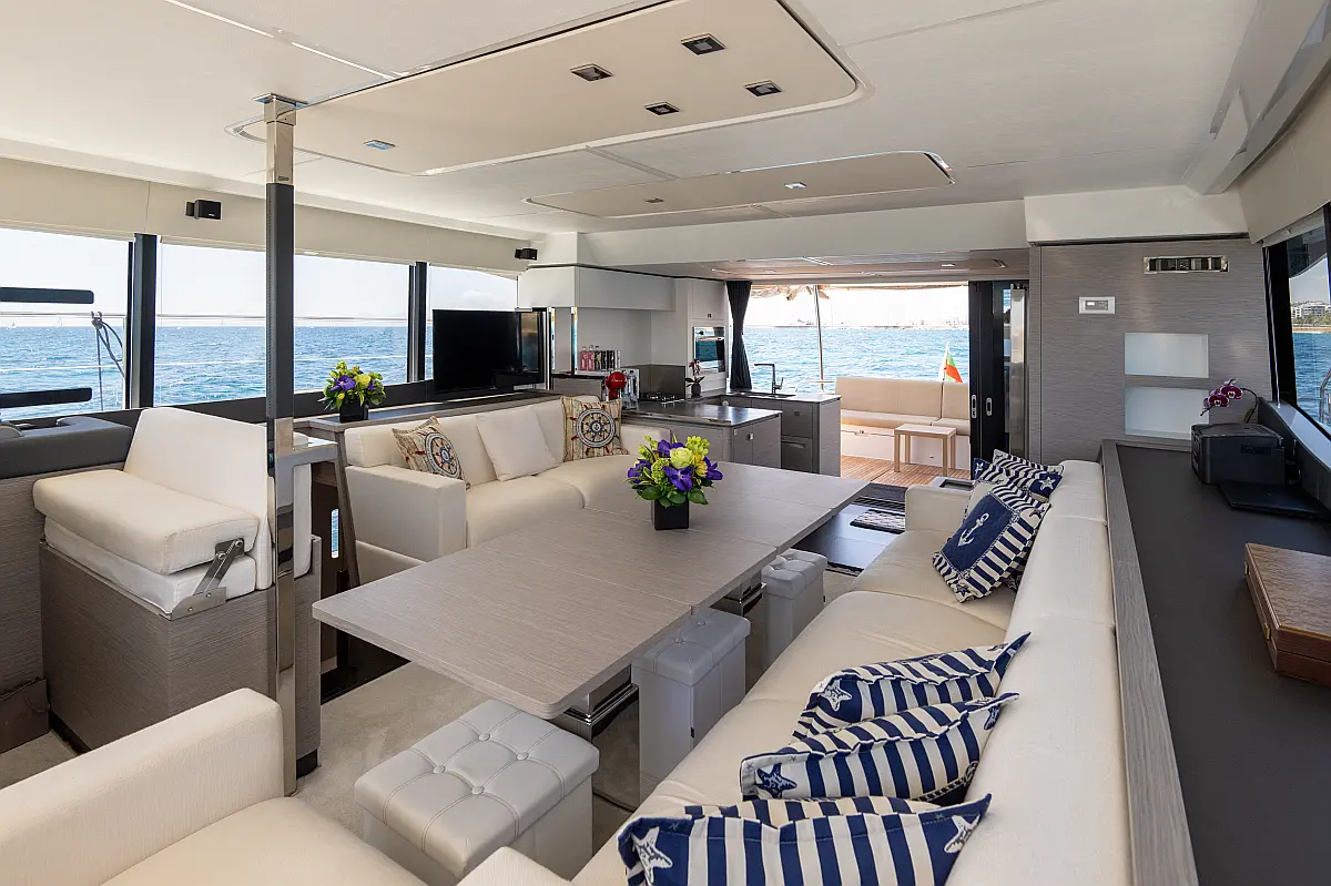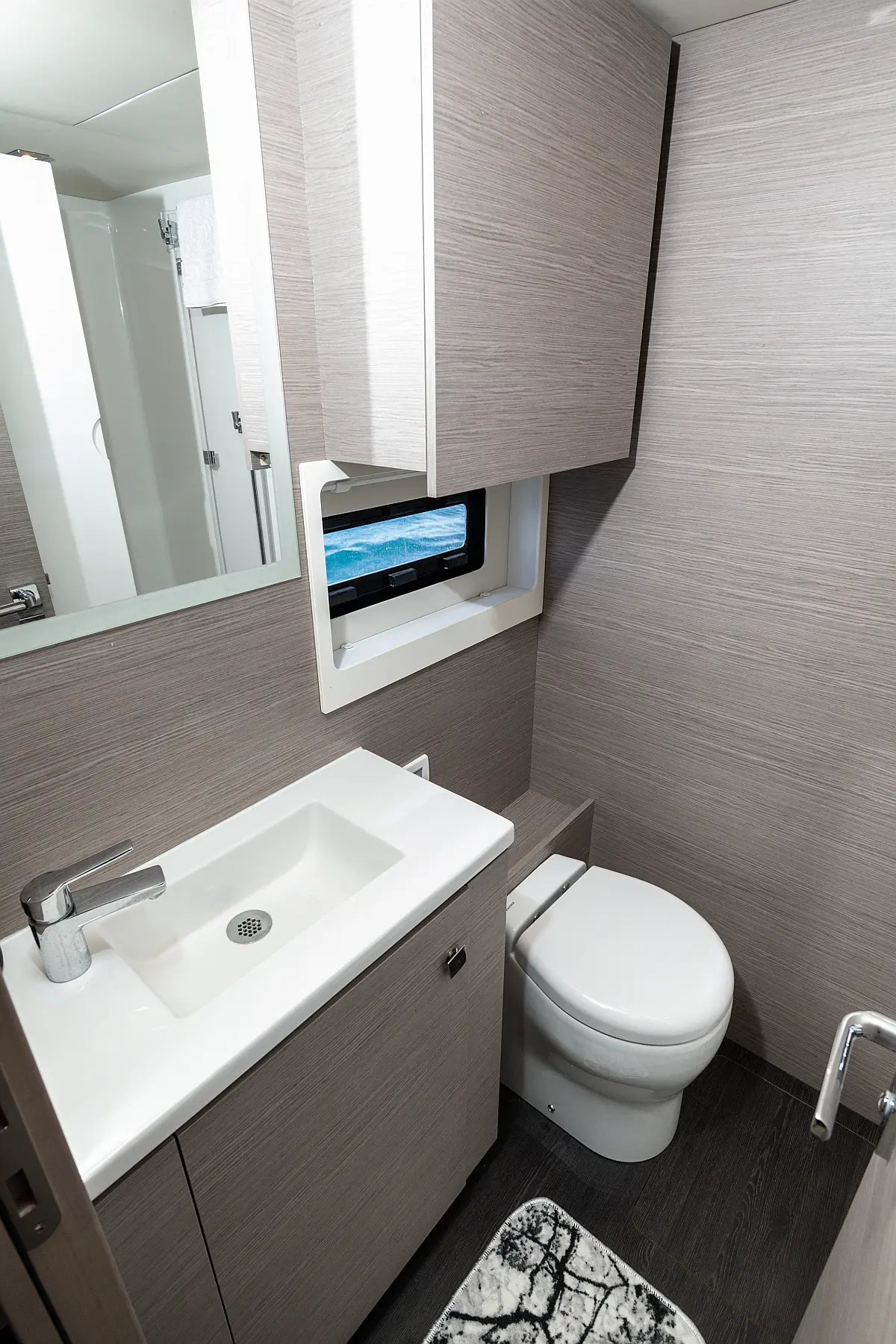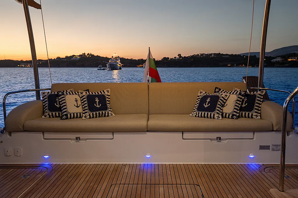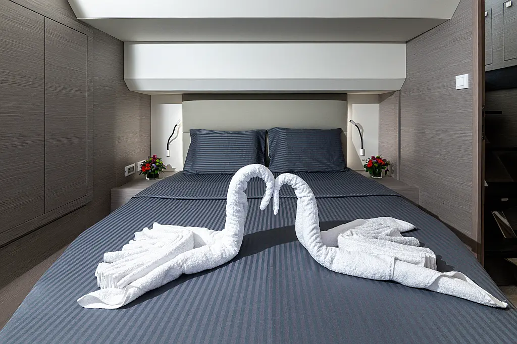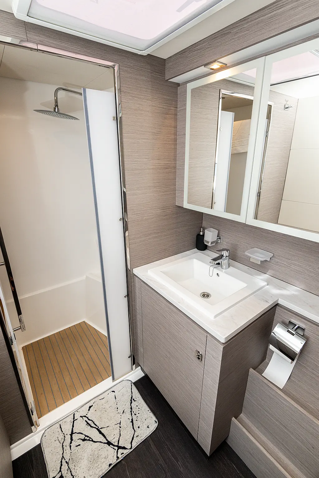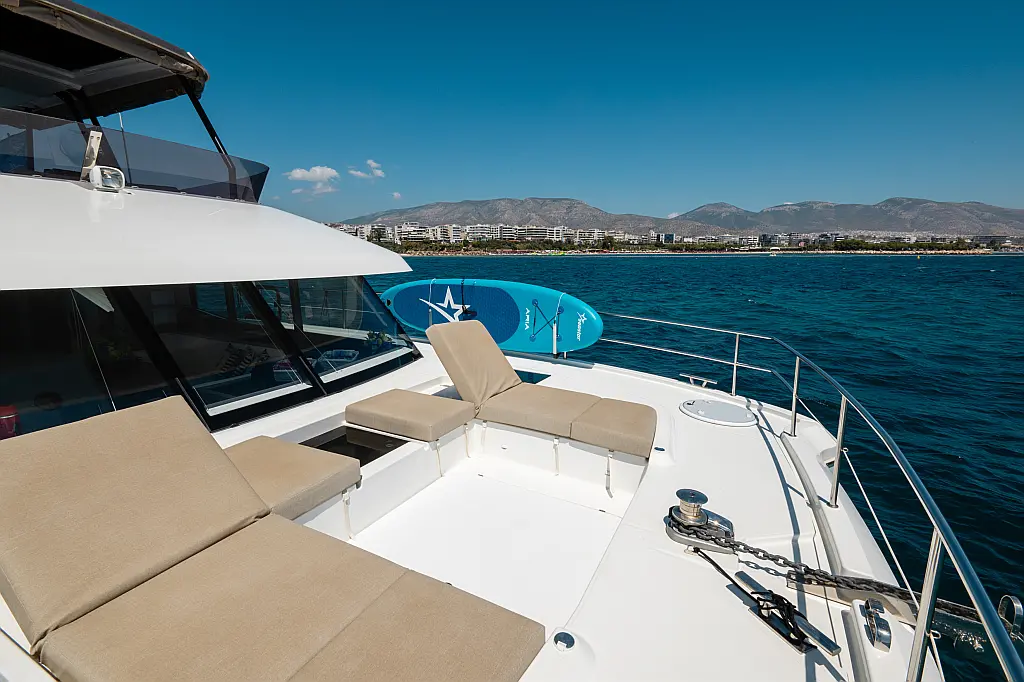 Hladnjak, Perilica posuđa, Perilica rublja/sušilica, Desalinizator, Pomoćni čamac, Klima, Generator, Električni WC, Inverter, Solarni paneli