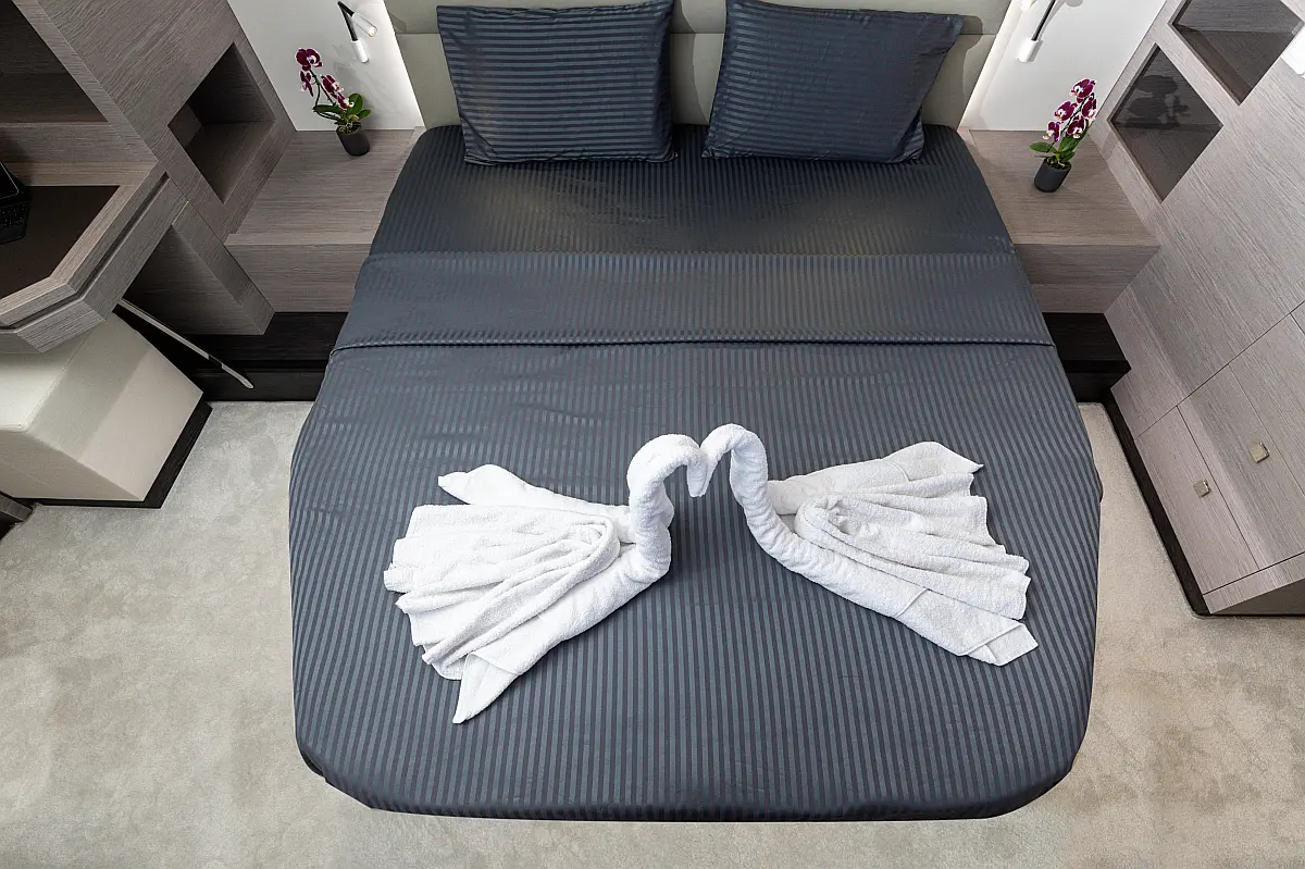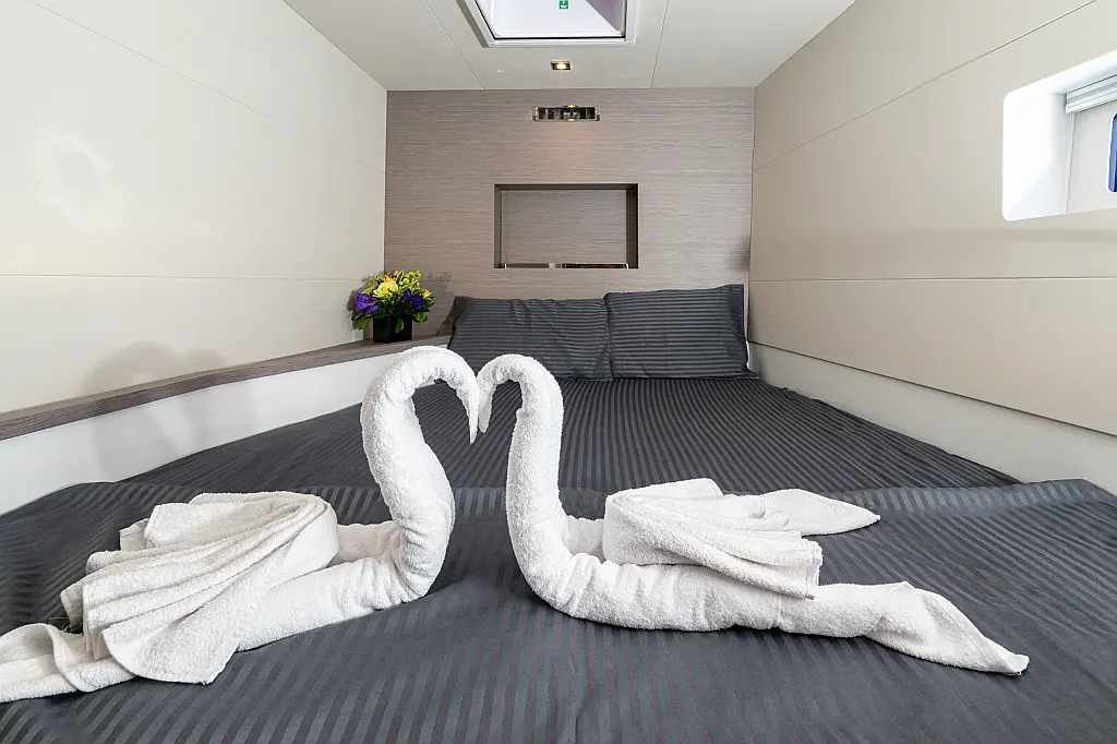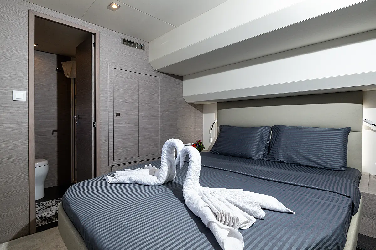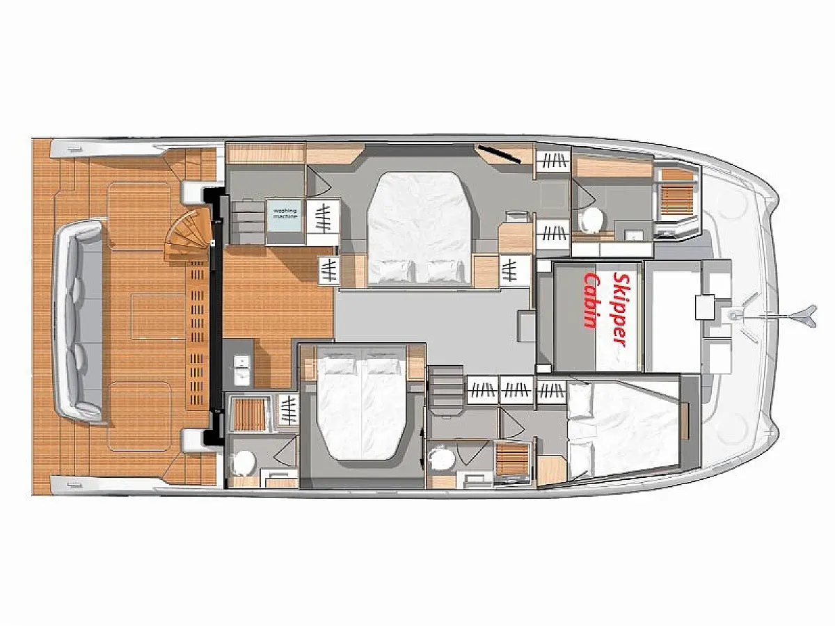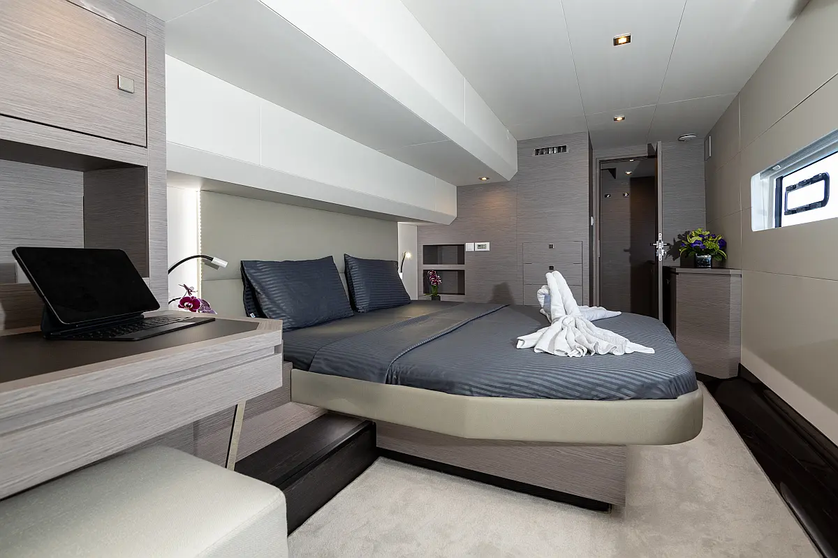 Hladnjak, Perilica posuđa, Perilica rublja/sušilica, Desalinizator, Pomoćni čamac, Klima, Generator, Električni WC, Inverter, Solarni paneli