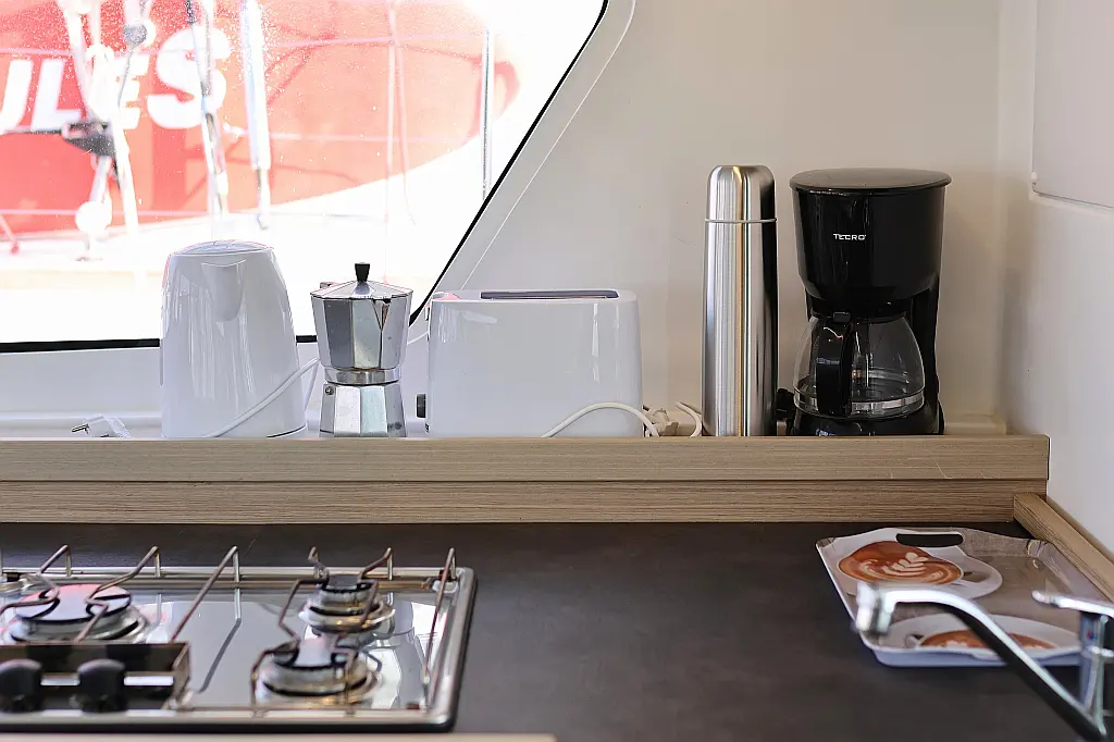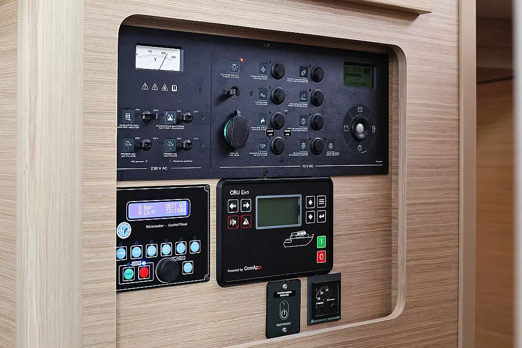 Klima, Generator, Desalinizator, Zvučnici u kokpitu, Wi-Fi i internet, Hladnjak, Pomoćni čamac