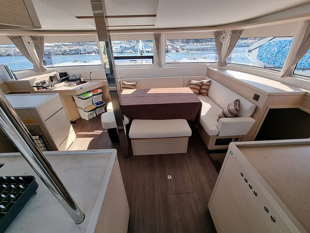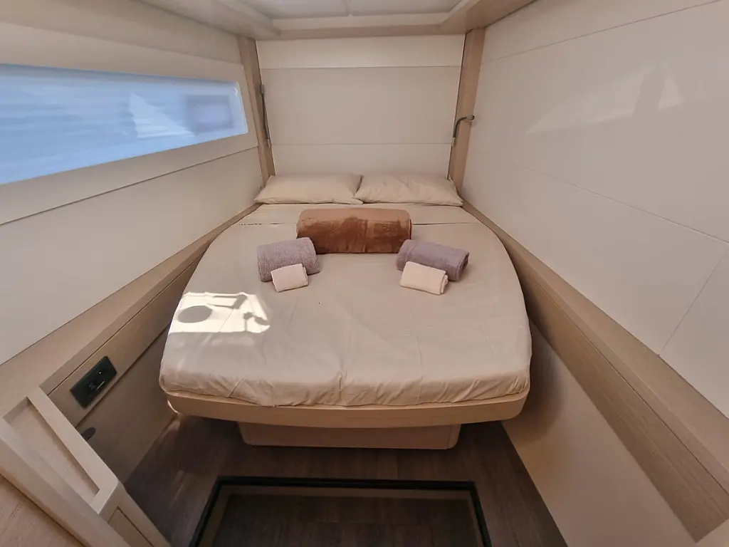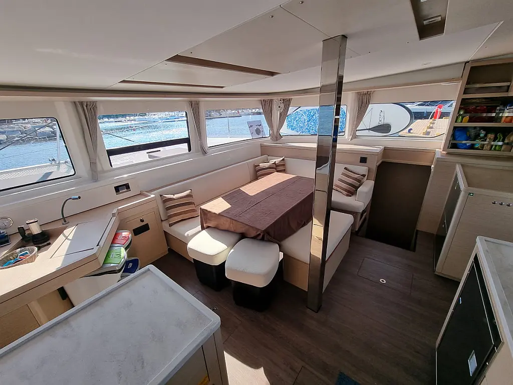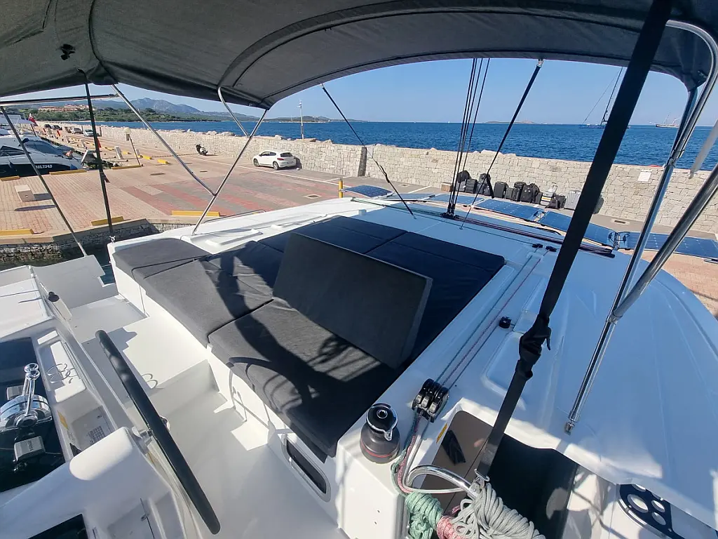 Bimini, Klima, Roštilj u kokpitu, Crni tank, Električni WC, Aparat za kavu, Generator, Inverter, Vanbrodski motor, Hladnjak, Solarni paneli, Zvučnici u kokpitu, Tikovina u kokpitu, Pomoćni čamac, Desalinizator, Wi-Fi i internet, Ledomat