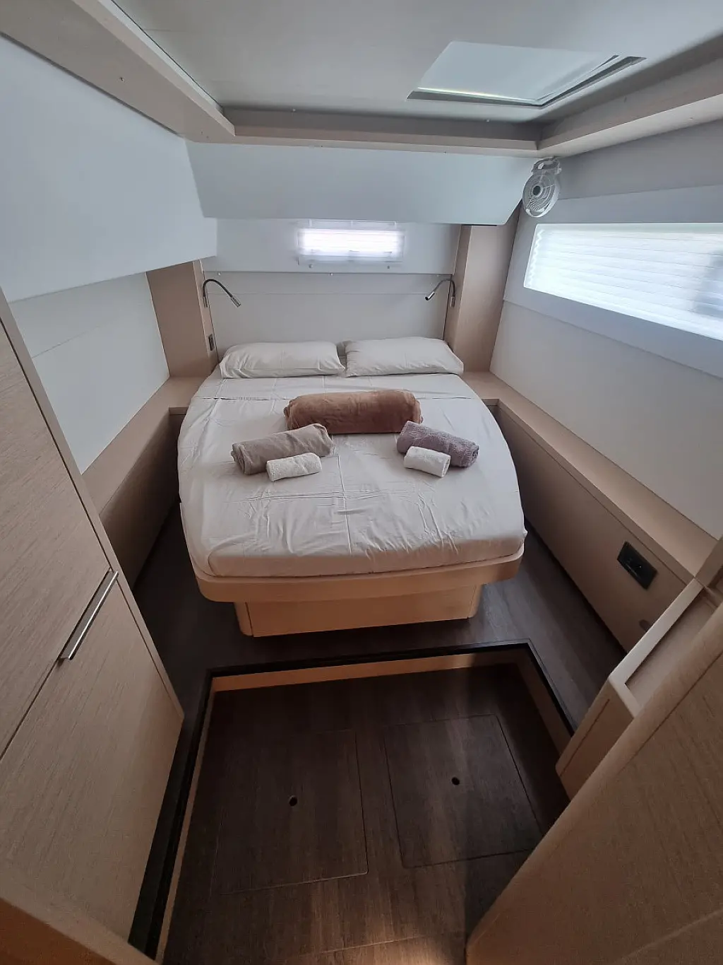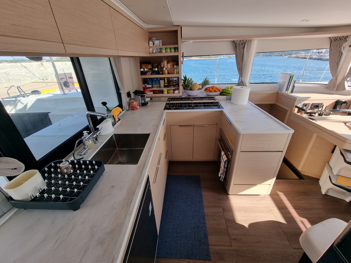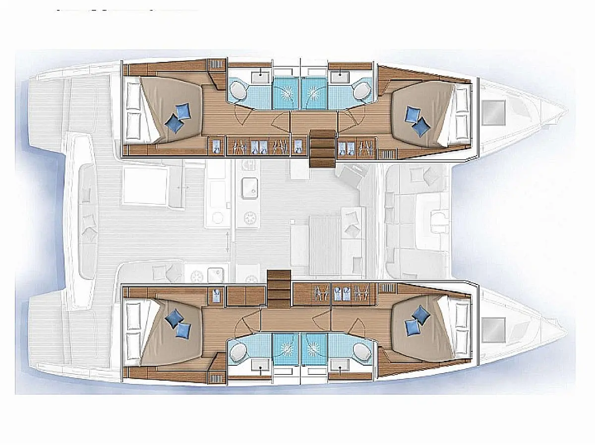 Bimini, Klima, Roštilj u kokpitu, Crni tank, Električni WC, Aparat za kavu, Generator, Inverter, Vanbrodski motor, Hladnjak, Solarni paneli, Zvučnici u kokpitu, Tikovina u kokpitu, Pomoćni čamac, Desalinizator, Wi-Fi i internet, Ledomat