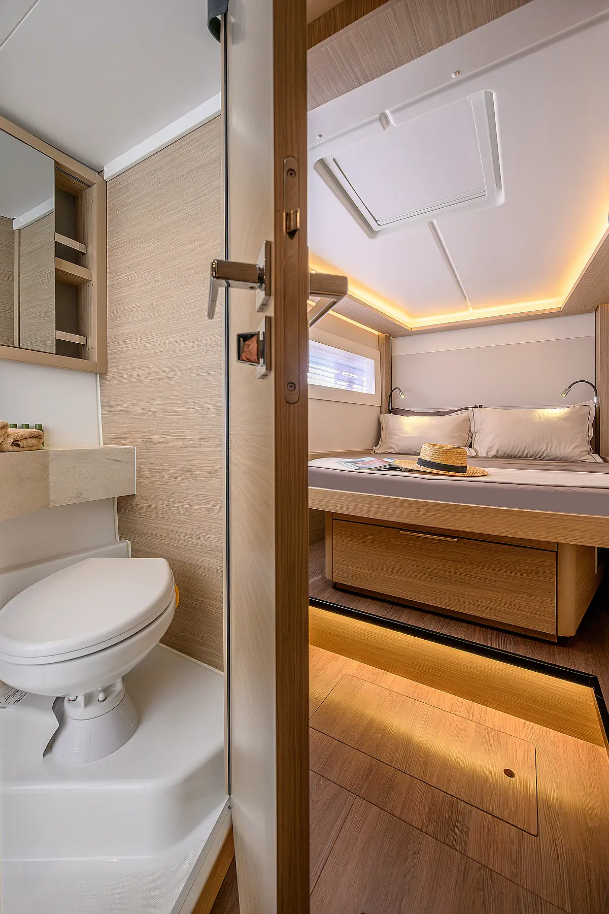 Bimini, Tikovina u kokpitu, Vanbrodski motor, Klima, Hladnjak, Generator, Ledomat, Aparat za kavu, Desalinizator, Wi-Fi i internet, Električni WC