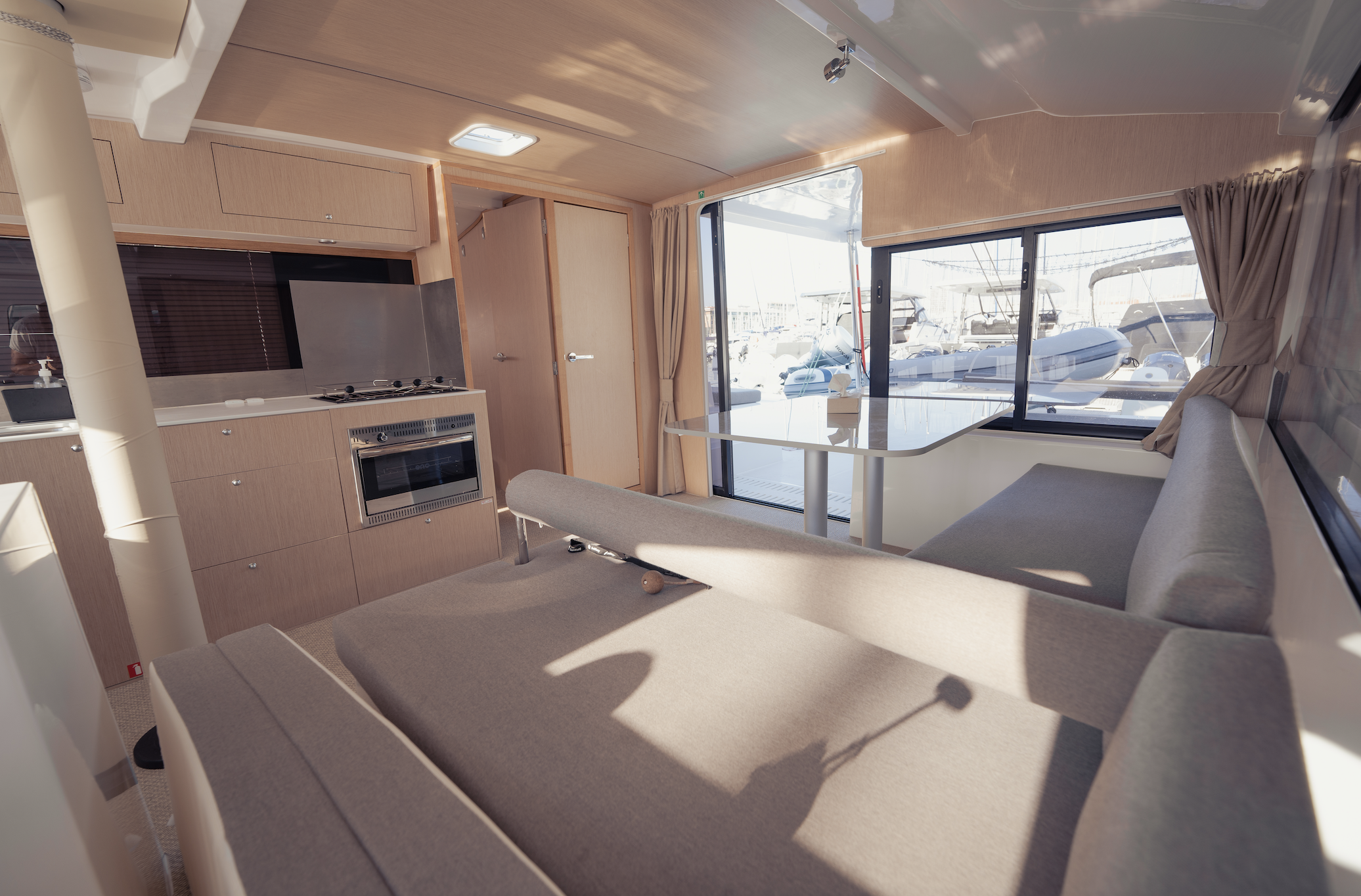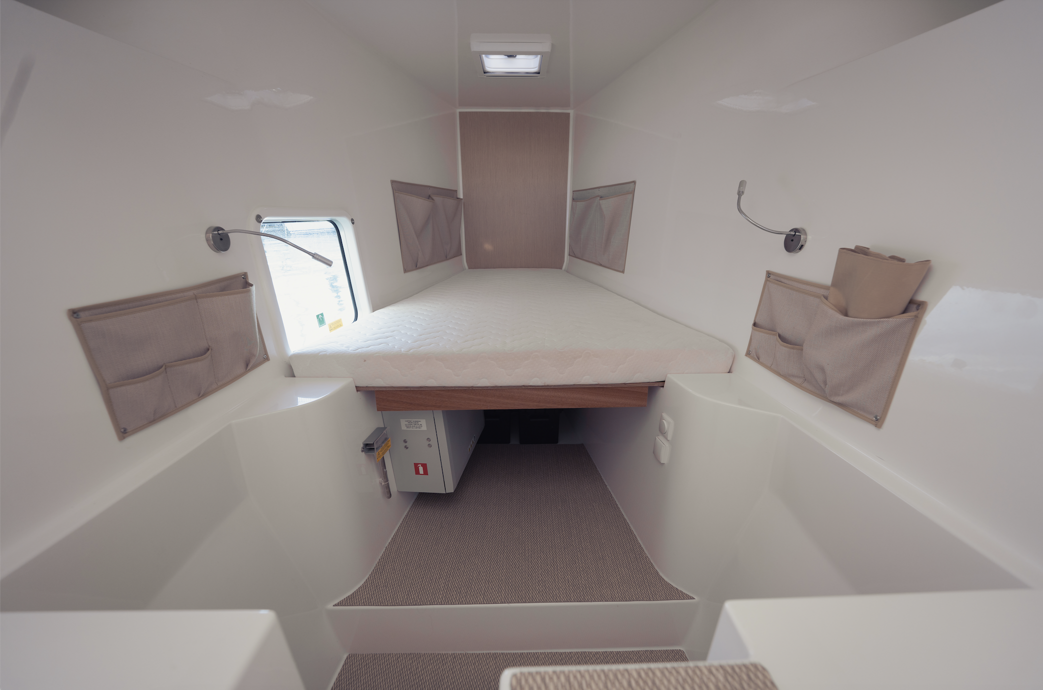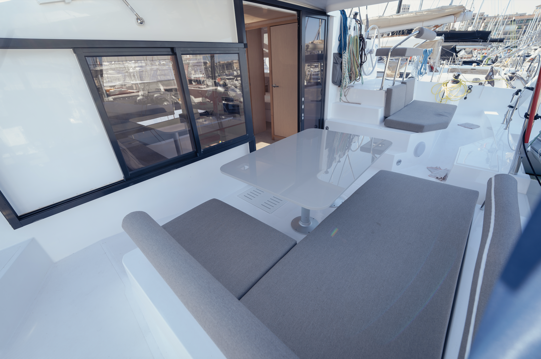Solarni paneli, Zvučnici u kokpitu, Jastuci u kokpitu, Desalinizator, Hladnjak, Pomoćni čamac, Električna vitla