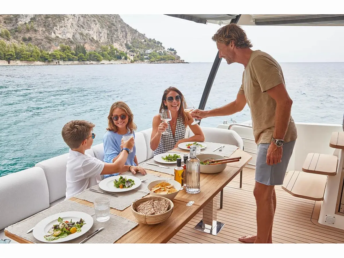 Flybridge, Jastuci u kokpitu, Zvučnici u kokpitu, Klima, Inverter, Generator, Perilica rublja/sušilica