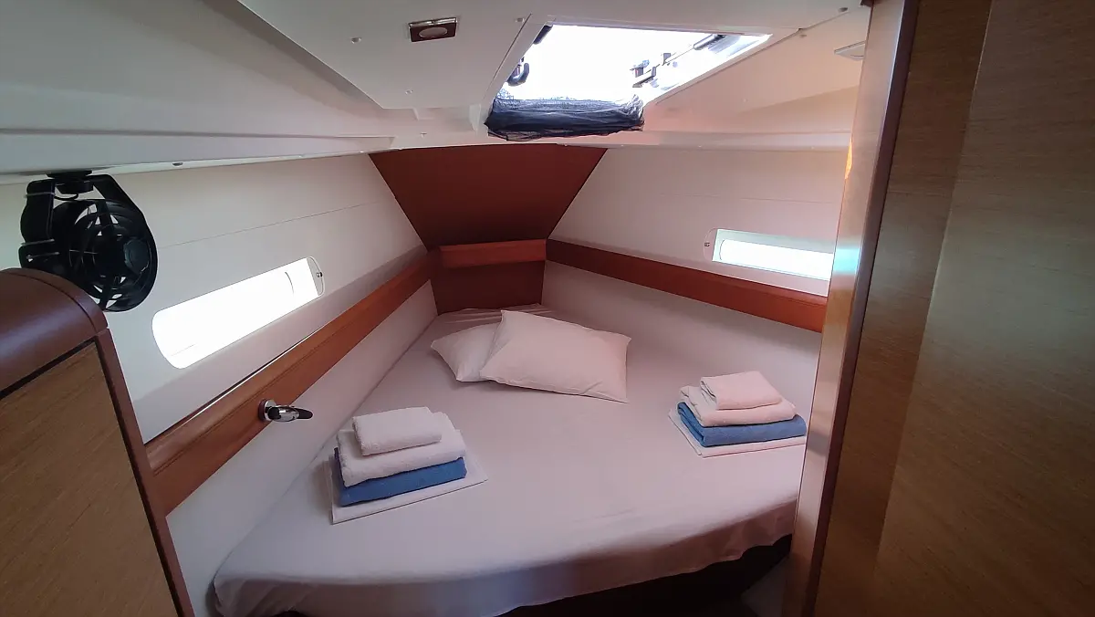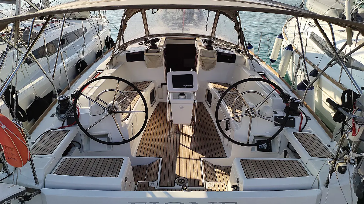 Zvučnici u kokpitu, Jastuci u kokpitu, Hladnjak, Tikovina u kokpitu, Platforma za plivanje, Crni tank, Sprayhood, Pomoćni čamac, Bimini, Solarni paneli, Inverter
