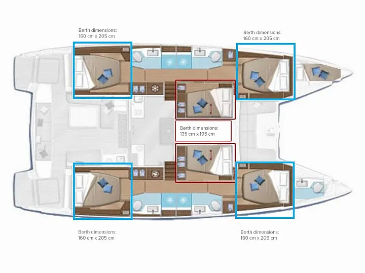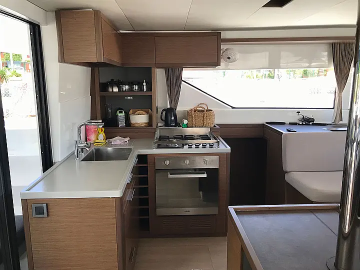 Tender, Cuscini in pozzetto, Teak in pozzetto , Verricelli elettrici, Frigorifero, Aria condizionata, Generatore, Inverter, Dissalatore, Macchina da caffè, Lavastoviglie, Macchina del ghiaccio, Bimini, Wi-Fi e Internet, Altoparlanti in pozzetto