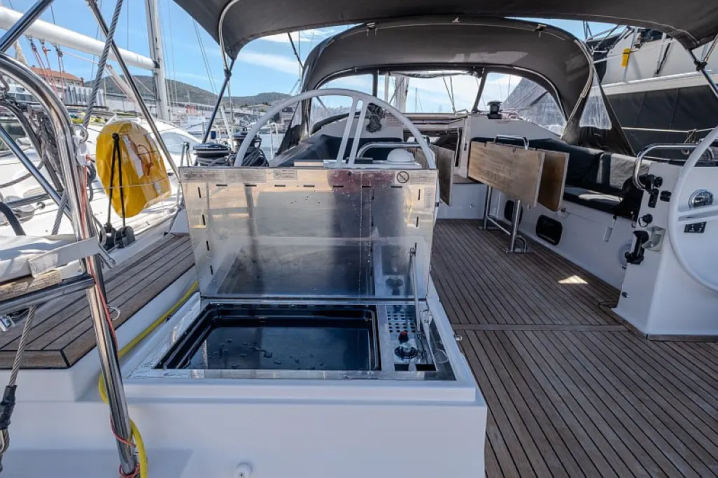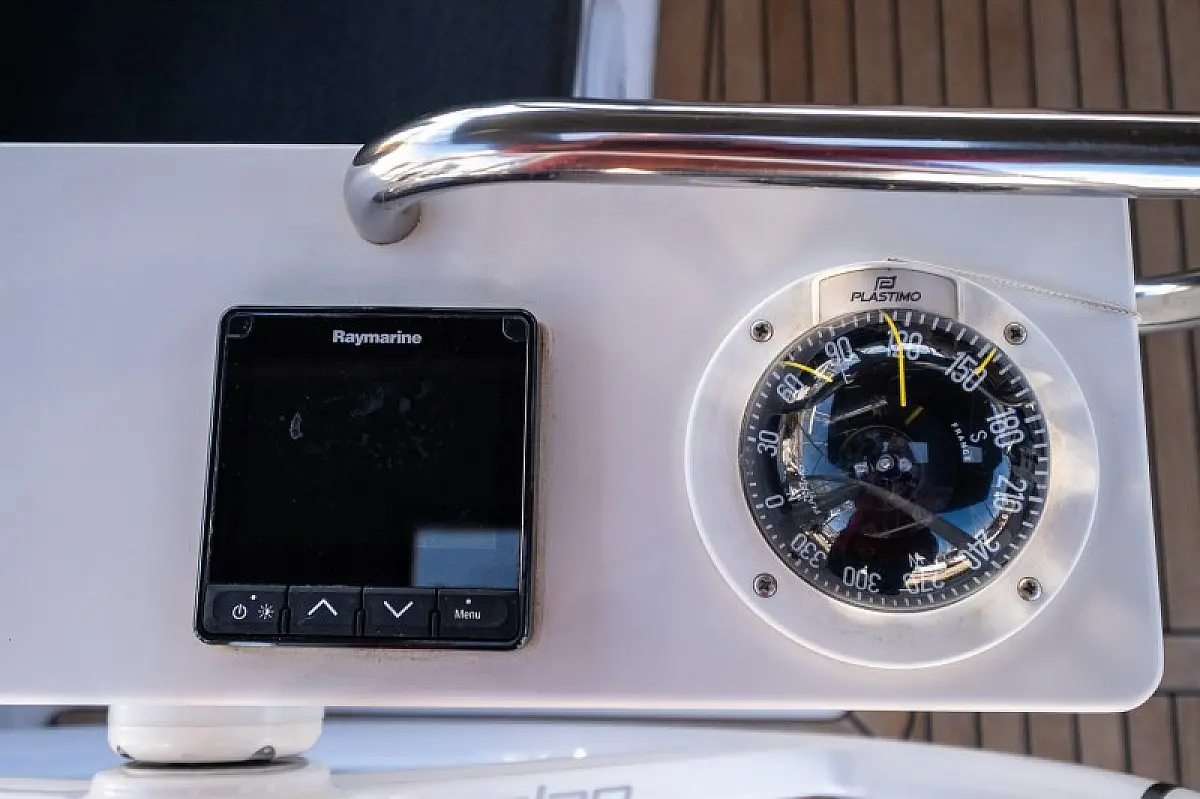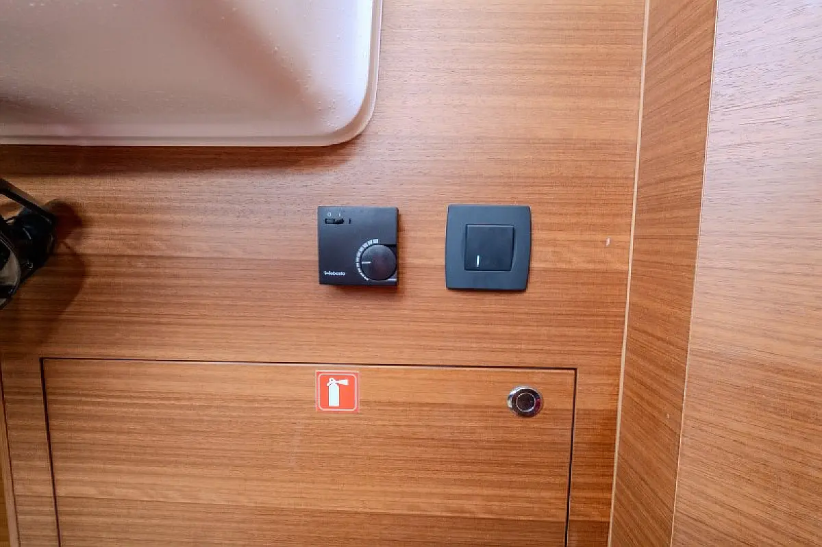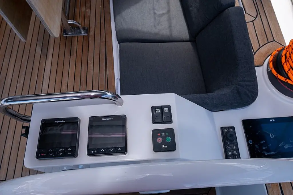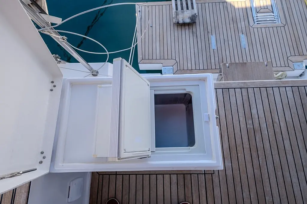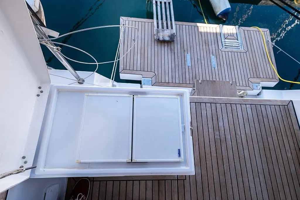 Generatore, Riscaldamento, Pannelli solari, Aria condizionata, Frigorifero, Barbecue in pozzetto, Bimini, Cuscini in pozzetto, Sprayhood, Motore fuoribordo, Tender, Wi-Fi e Internet