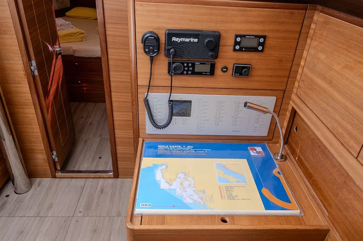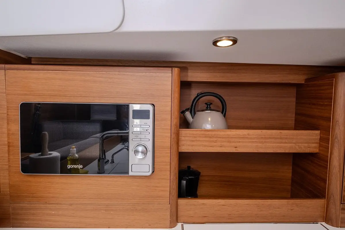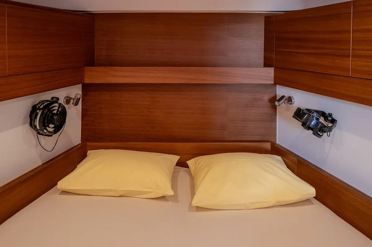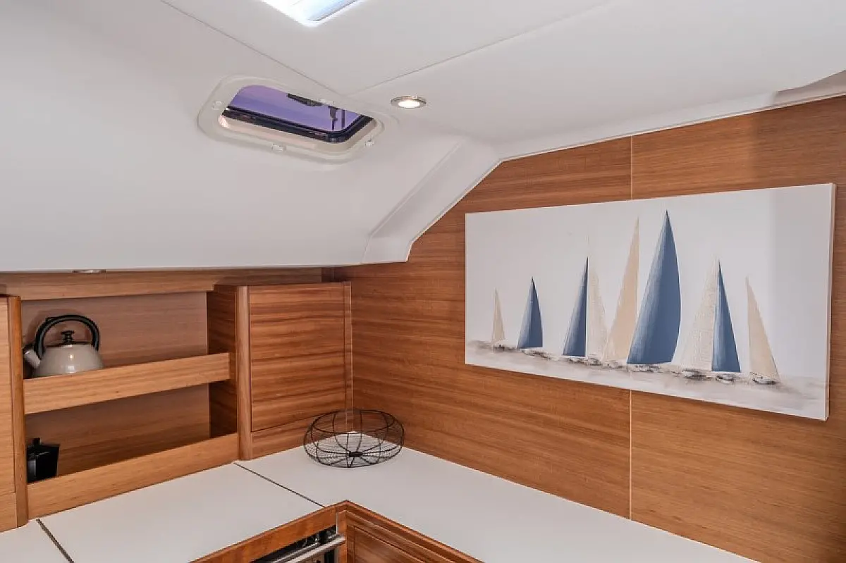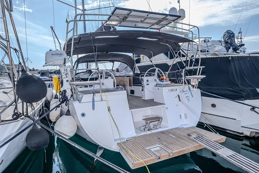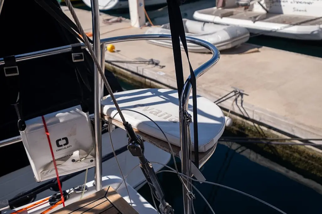 Generatore, Riscaldamento, Pannelli solari, Aria condizionata, Frigorifero, Barbecue in pozzetto, Bimini, Cuscini in pozzetto, Sprayhood, Motore fuoribordo, Tender, Wi-Fi e Internet