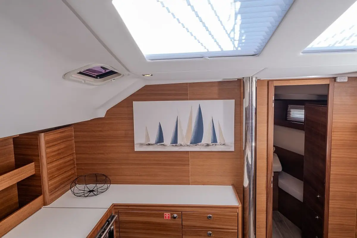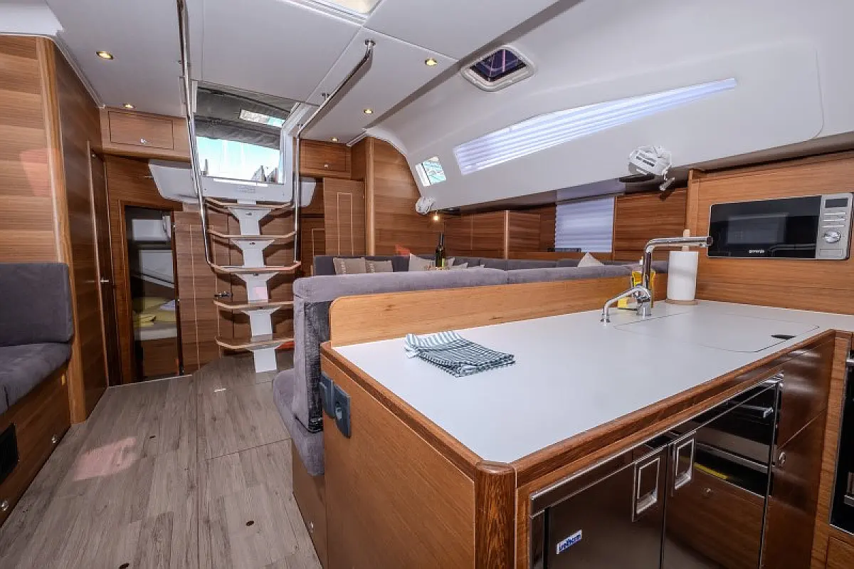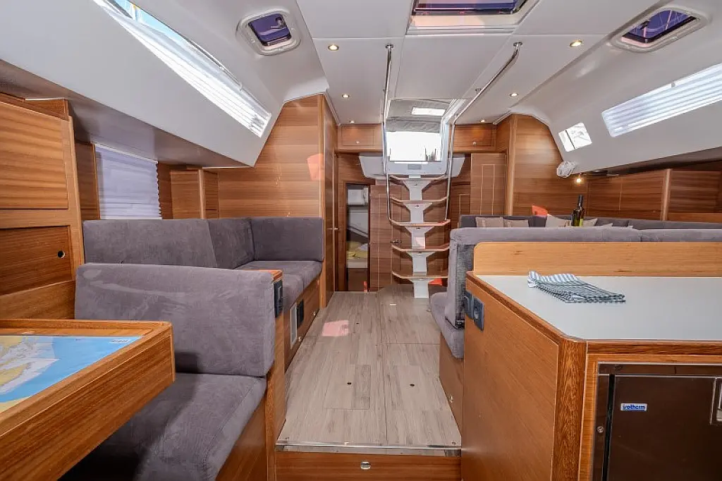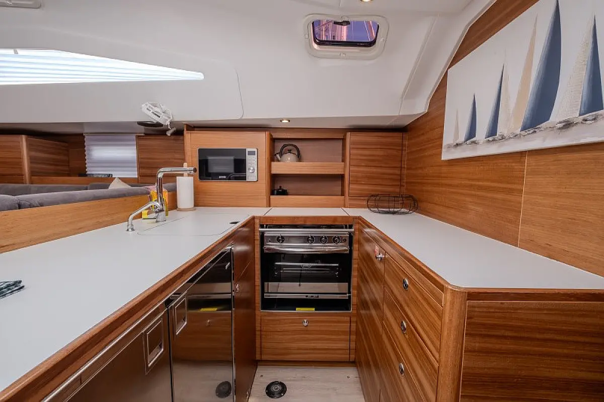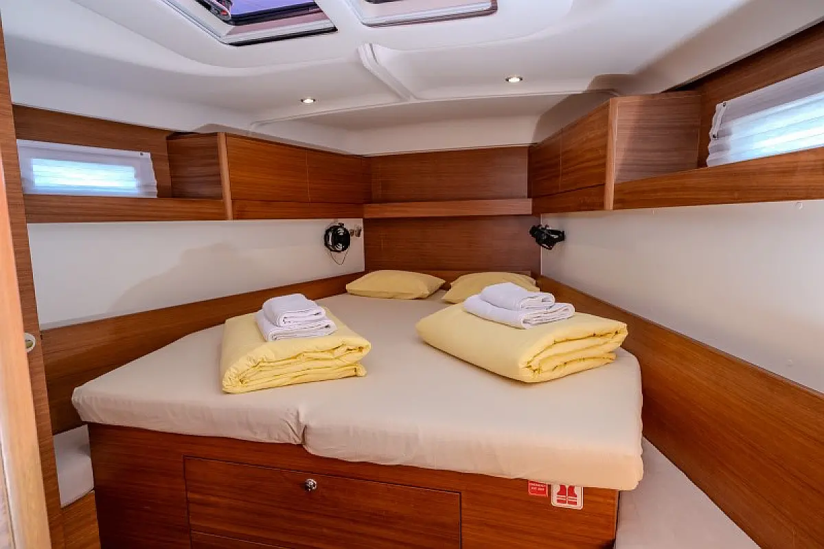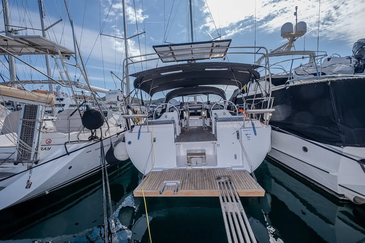 Generatore, Riscaldamento, Pannelli solari, Aria condizionata, Frigorifero, Barbecue in pozzetto, Bimini, Cuscini in pozzetto, Sprayhood, Motore fuoribordo, Tender, Wi-Fi e Internet