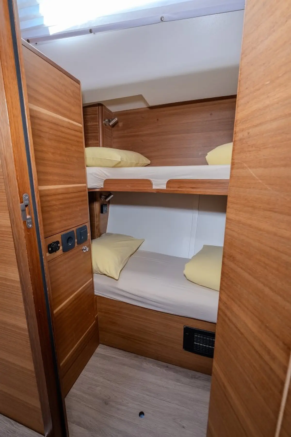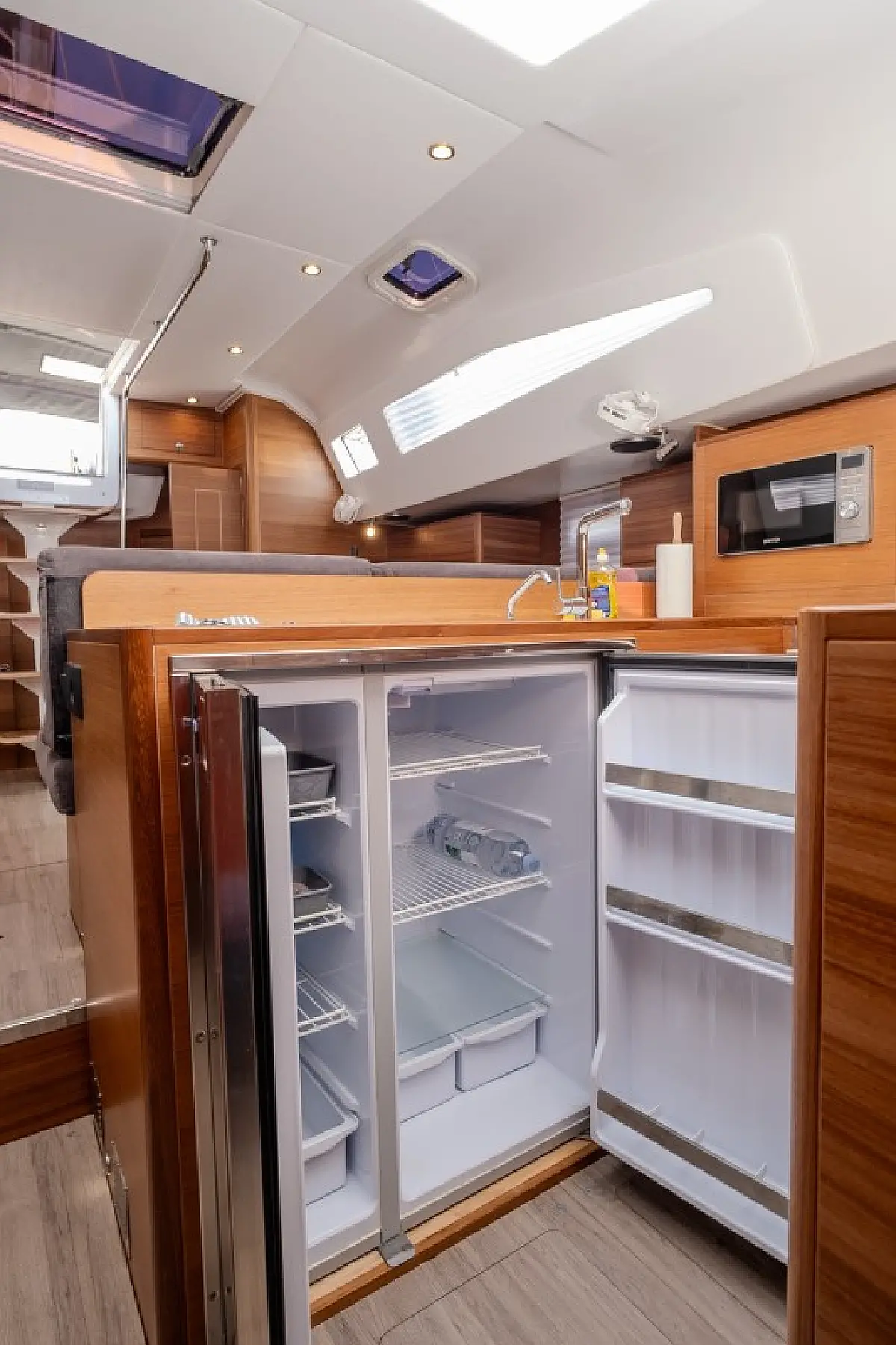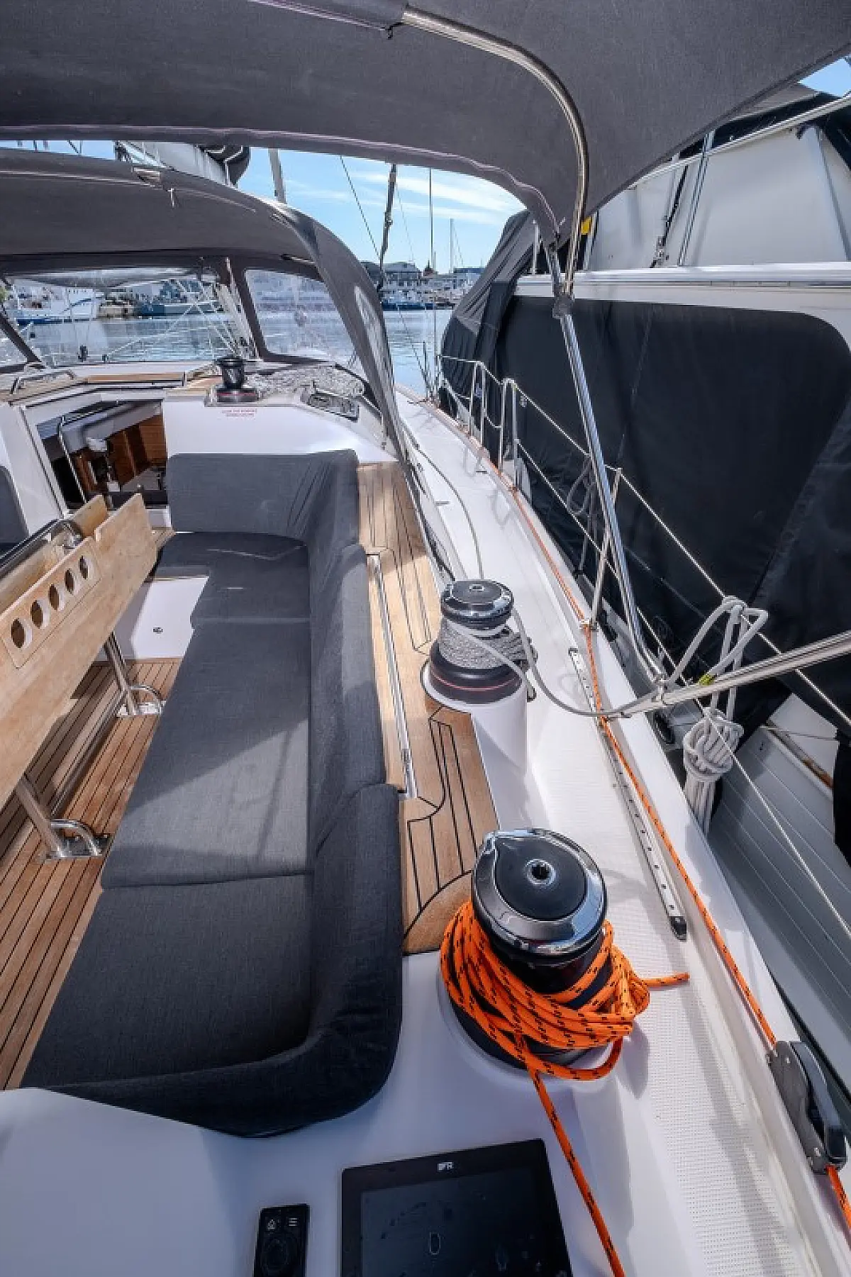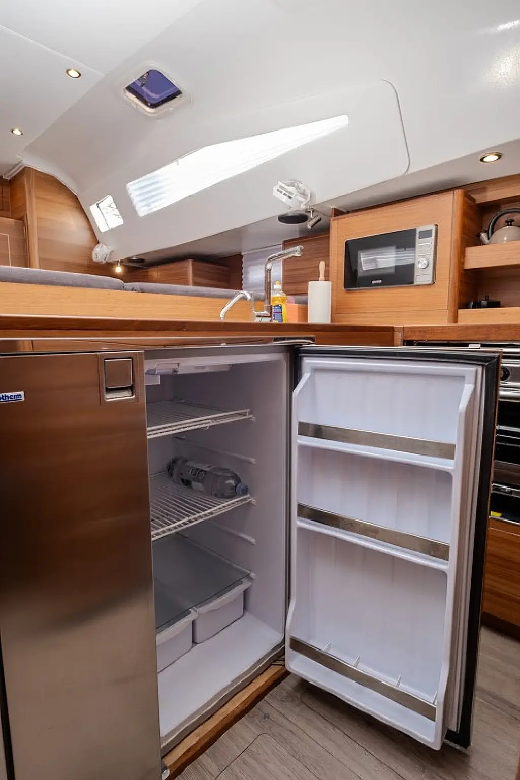 Generatore, Riscaldamento, Pannelli solari, Aria condizionata, Frigorifero, Barbecue in pozzetto, Bimini, Cuscini in pozzetto, Sprayhood, Motore fuoribordo, Tender, Wi-Fi e Internet