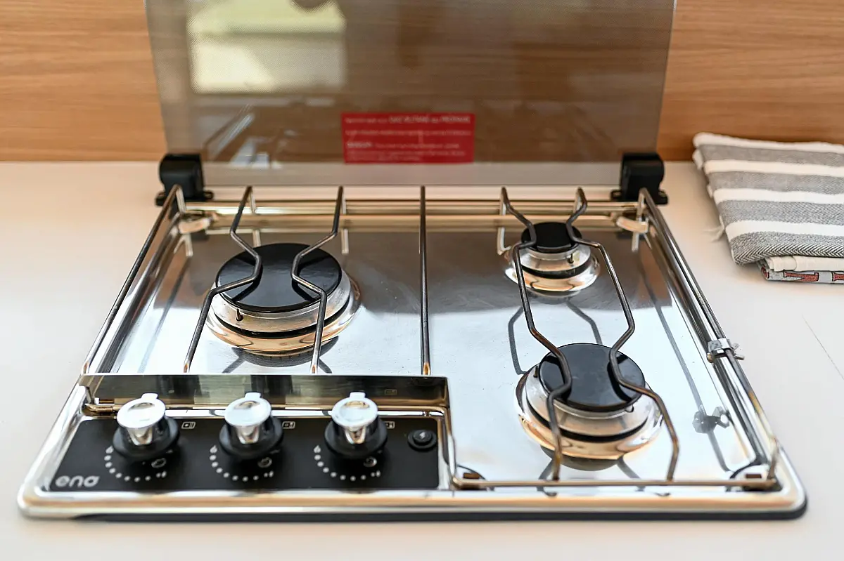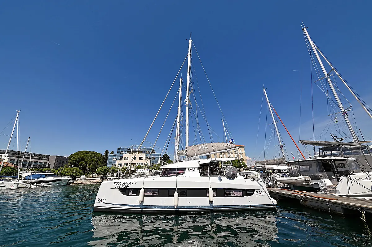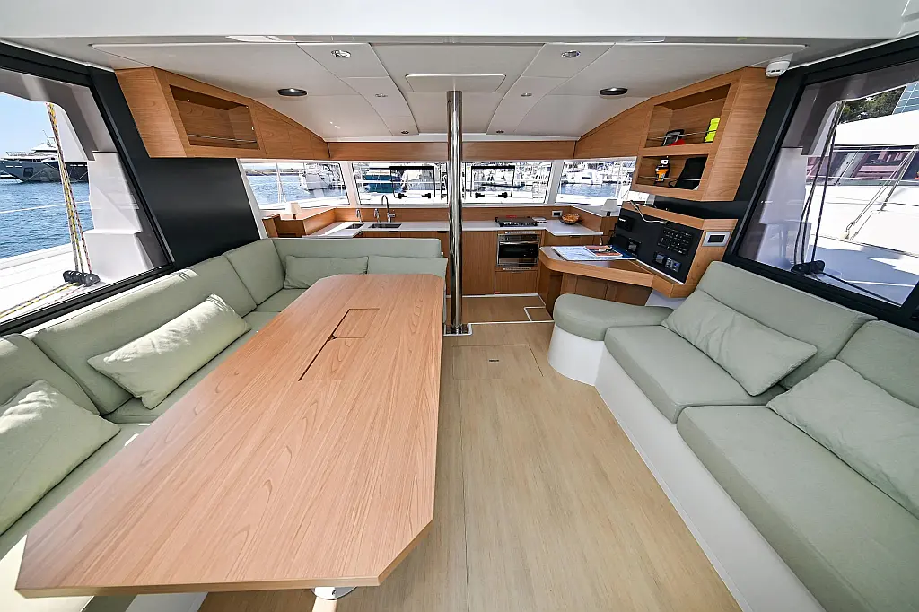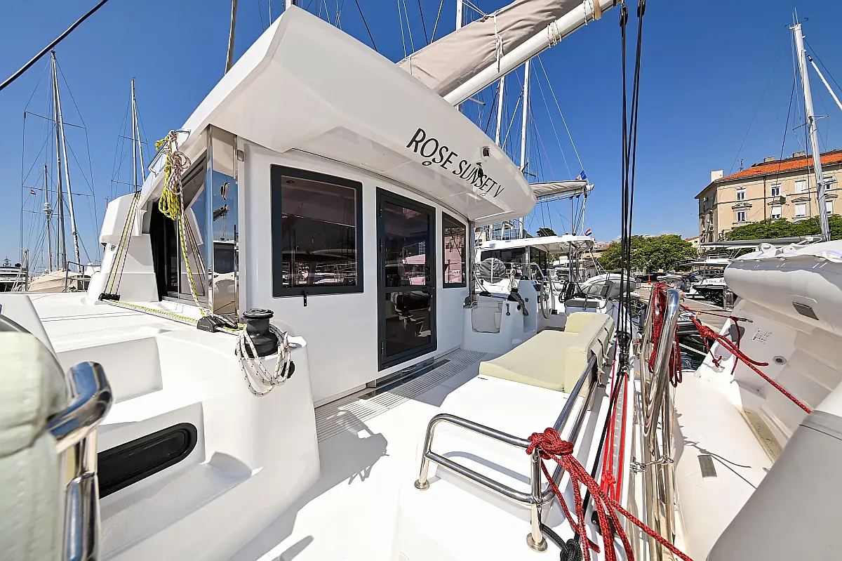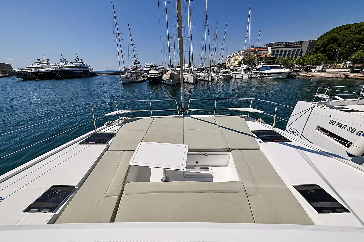 Serbatoio acque nere, Cuscini in pozzetto, Pannelli solari, WC elettrico, Piattaforma da bagno, Tender, Frigorifero
