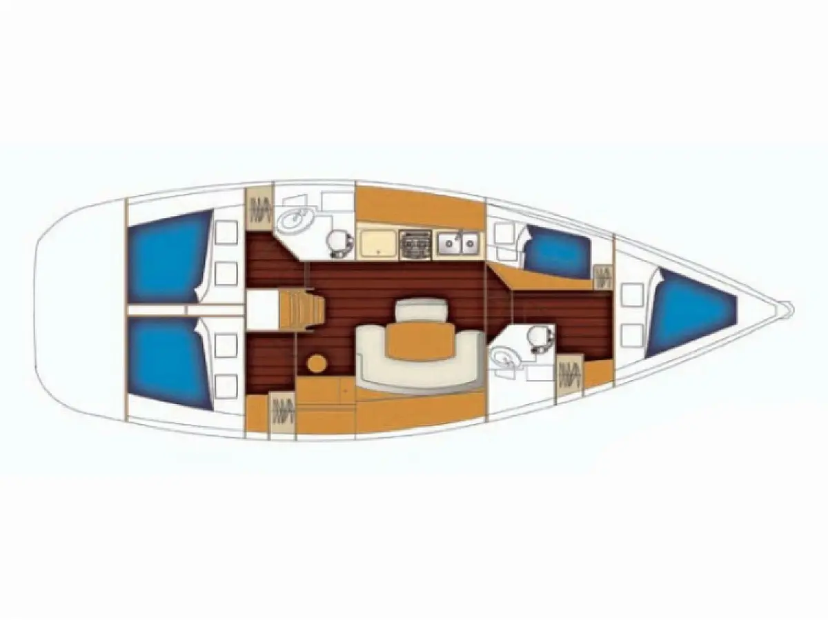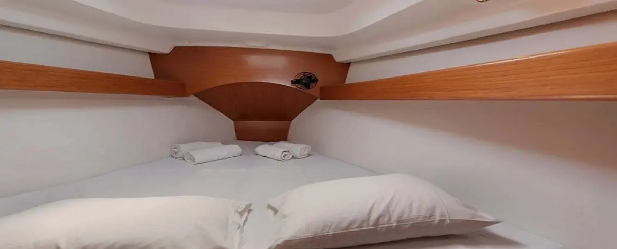 Bimini, Sprayhood, Verricelli elettrici, Tender, Motore fuoribordo, Pannelli solari, WC elettrico, Altoparlanti in pozzetto, Frigorifero