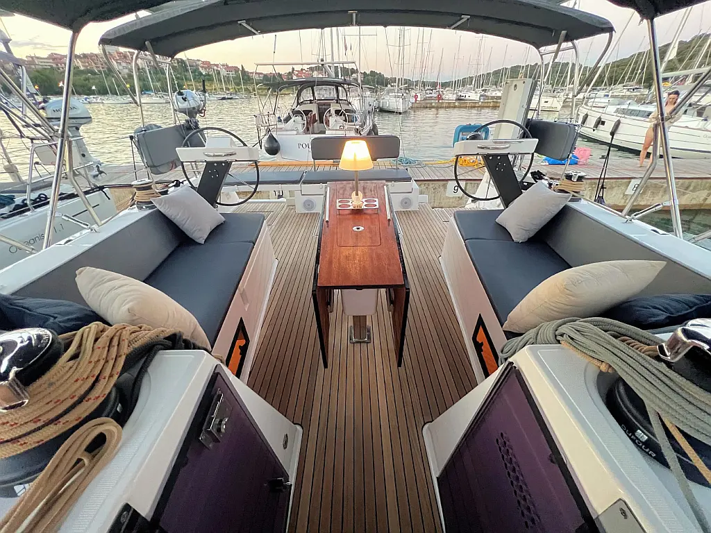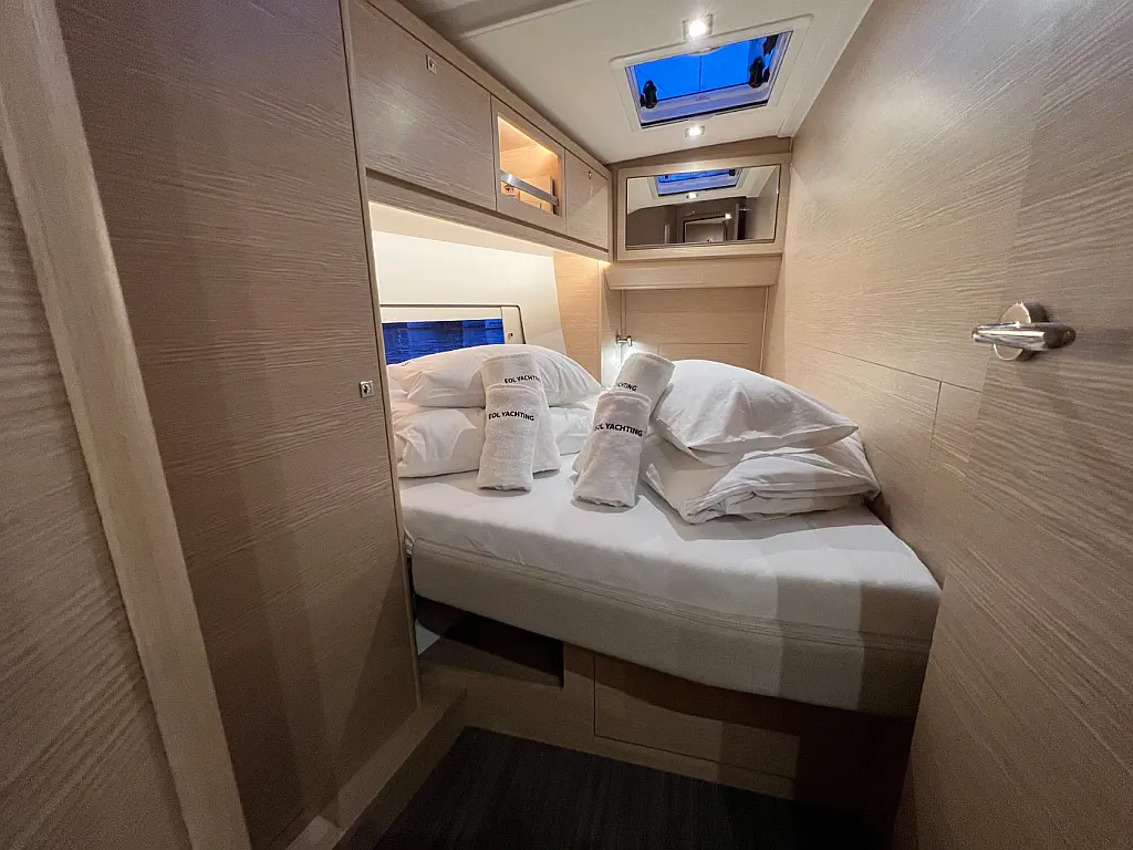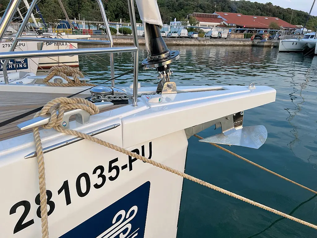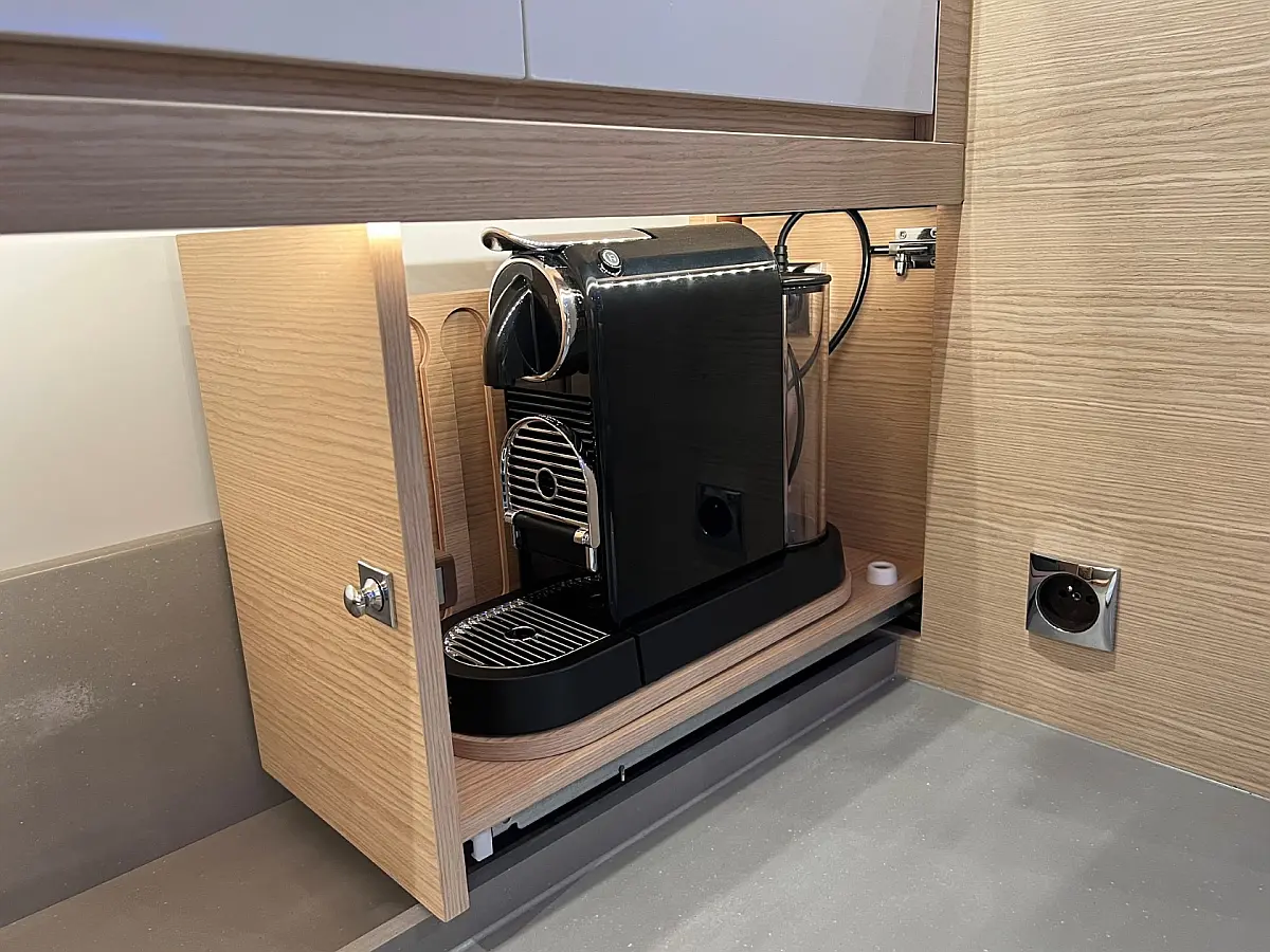 Altoparlanti in pozzetto, Serbatoio acque nere, Bimini, Cuscini in pozzetto, Frigorifero, Barbecue in pozzetto, Tender, Sprayhood, Teak in pozzetto , Ponte in Teak, Macchina da caffè, Riscaldamento, Pannelli solari