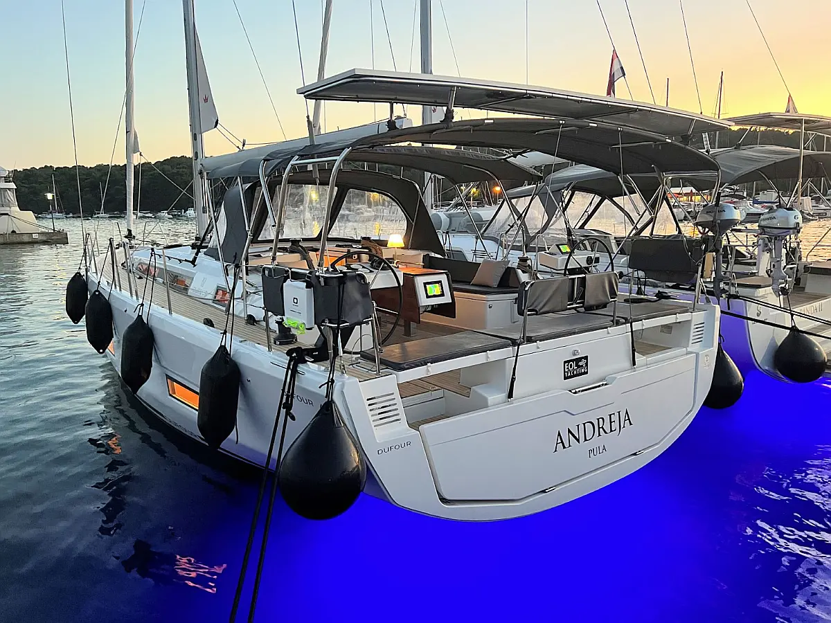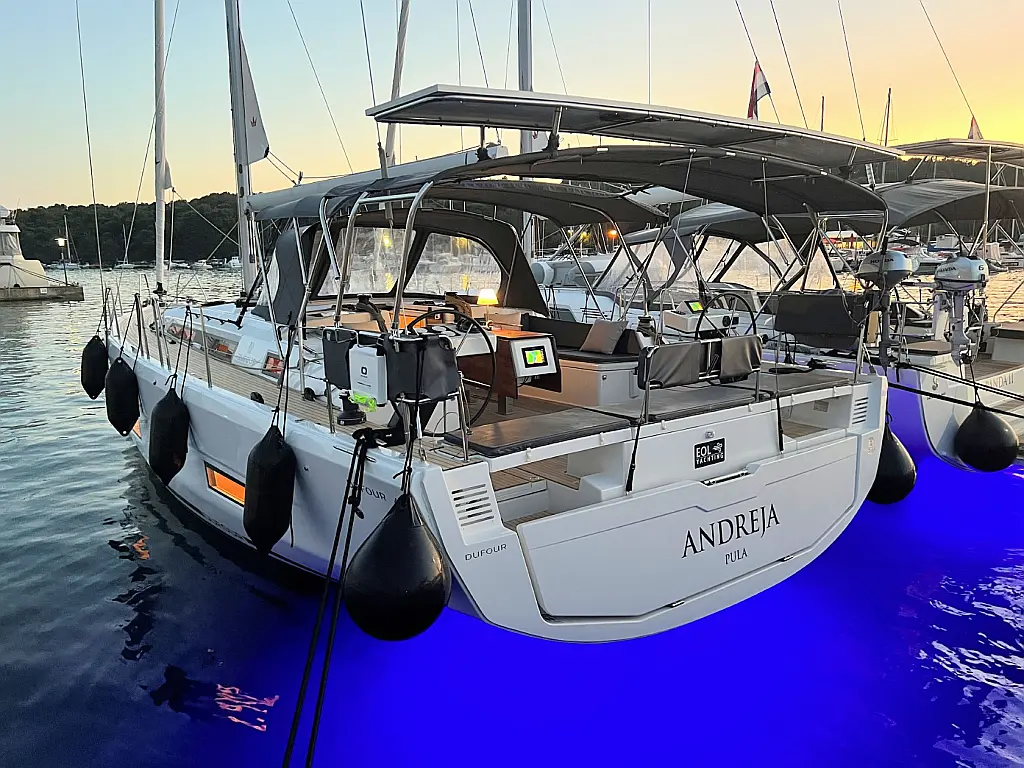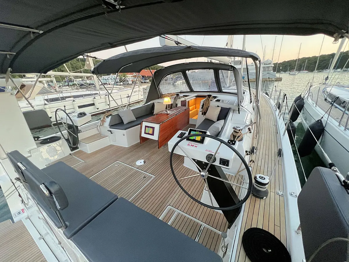 Altoparlanti in pozzetto, Serbatoio acque nere, Bimini, Cuscini in pozzetto, Frigorifero, Barbecue in pozzetto, Tender, Sprayhood, Teak in pozzetto , Ponte in Teak, Macchina da caffè, Riscaldamento, Pannelli solari
