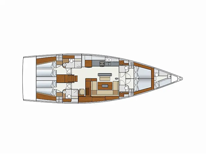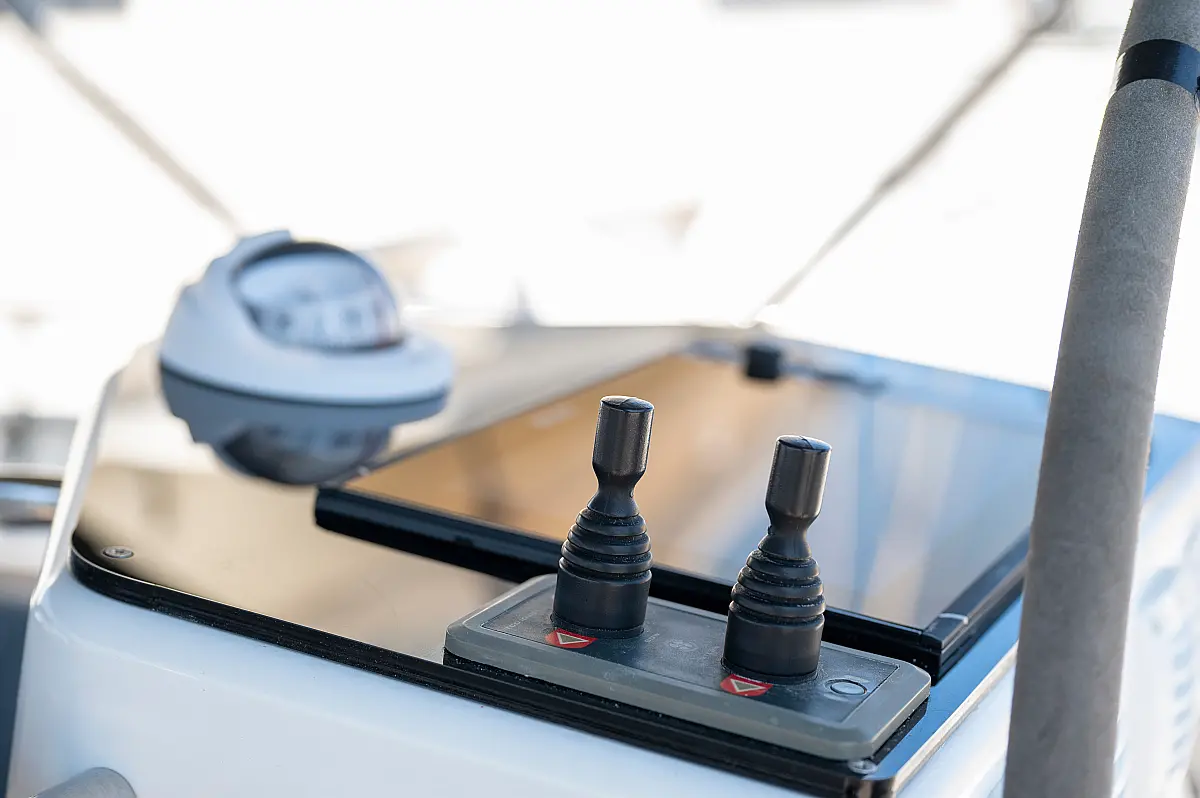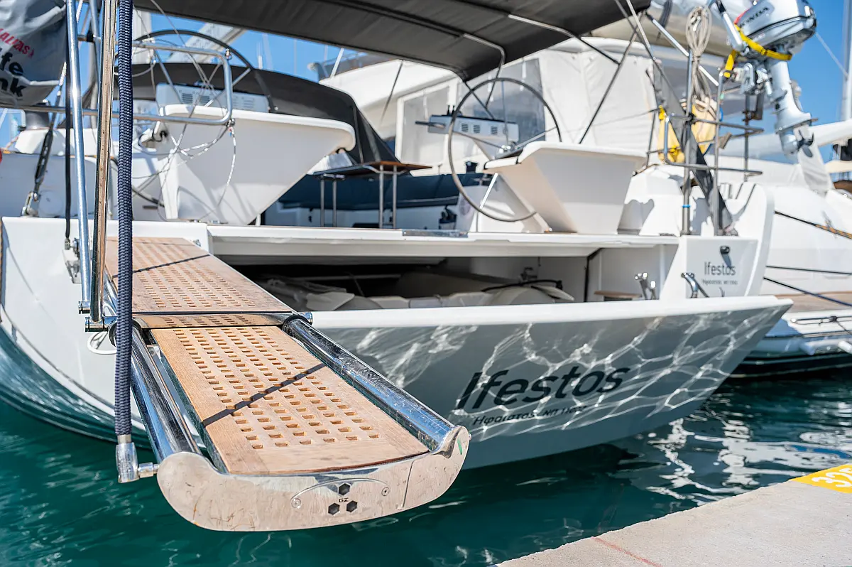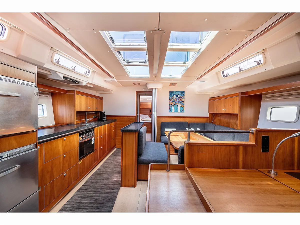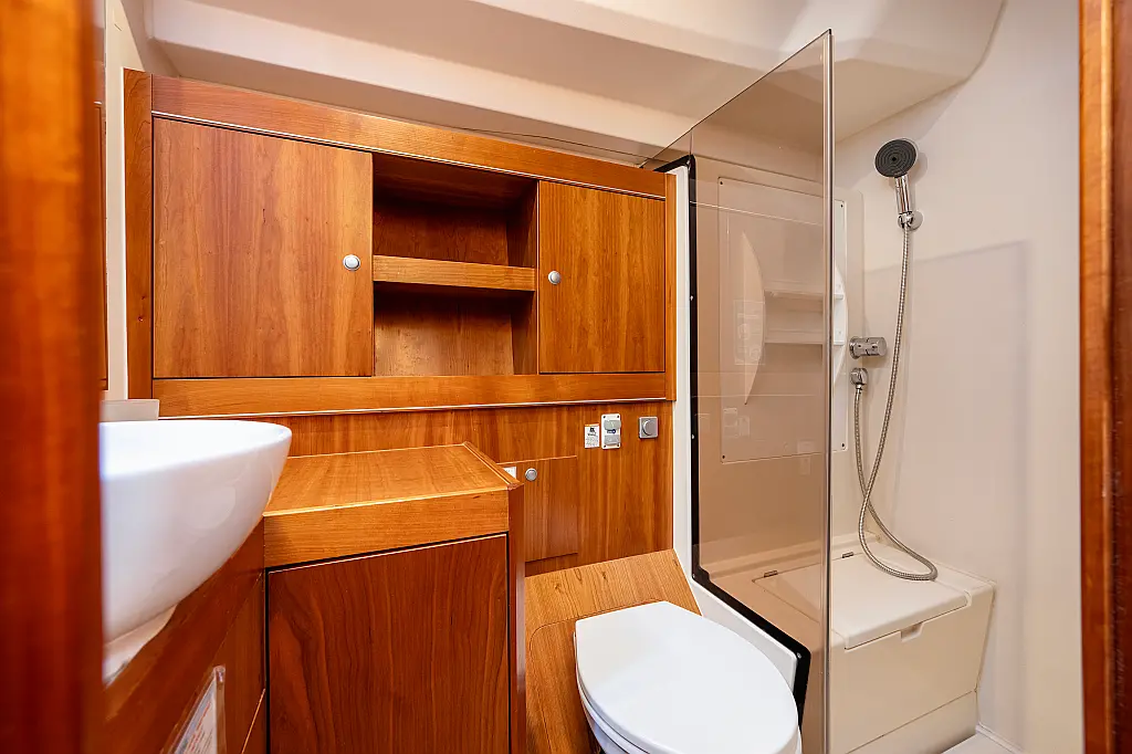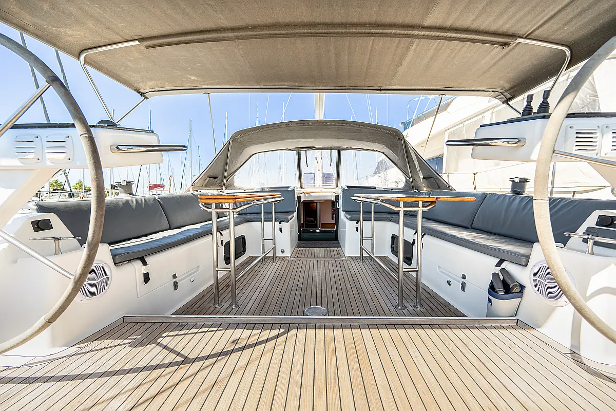 Aria condizionata, Pannelli solari, WC elettrico, Bimini, Sprayhood, Altoparlanti in pozzetto, Tender, Frigorifero, Generatore, Inverter, Motore fuoribordo, Cuscini in pozzetto, Piattaforma da bagno