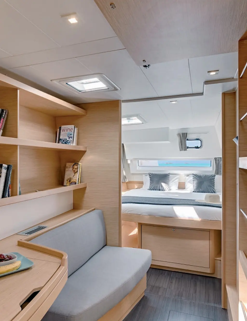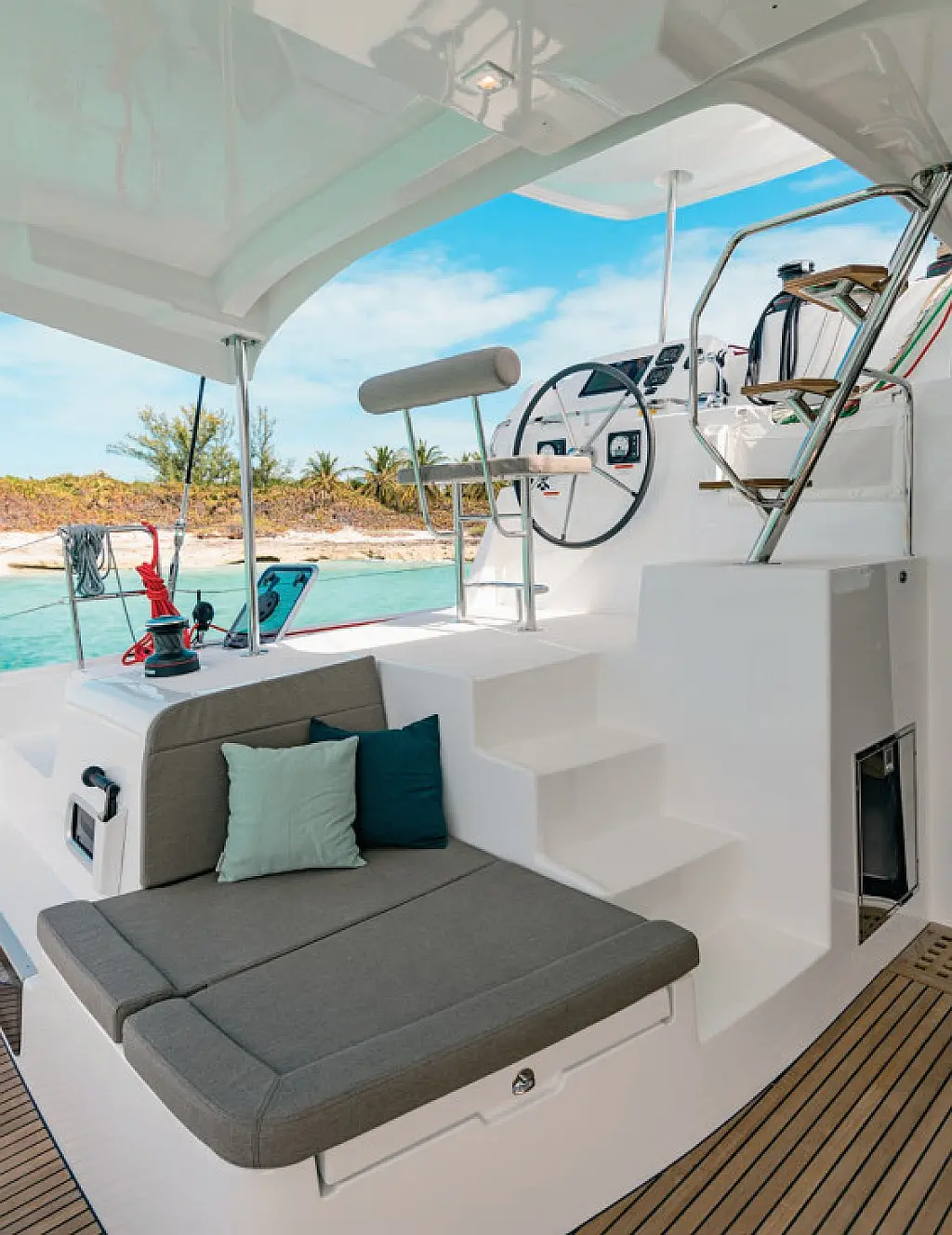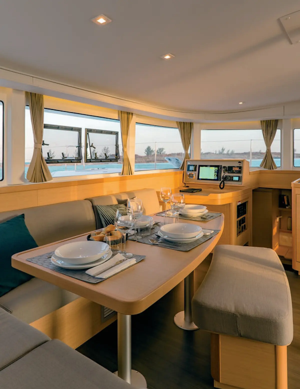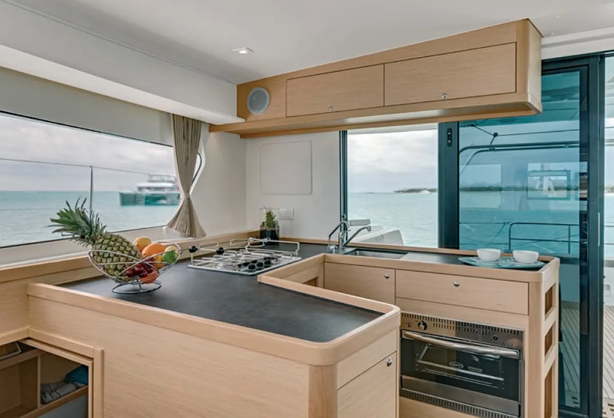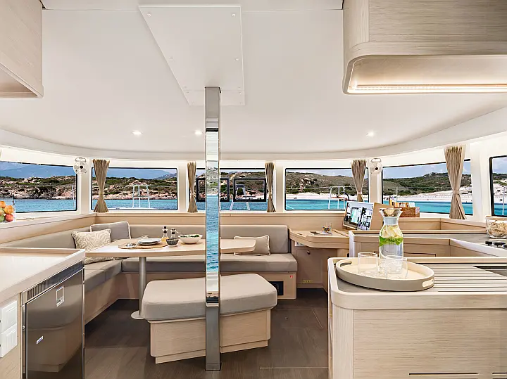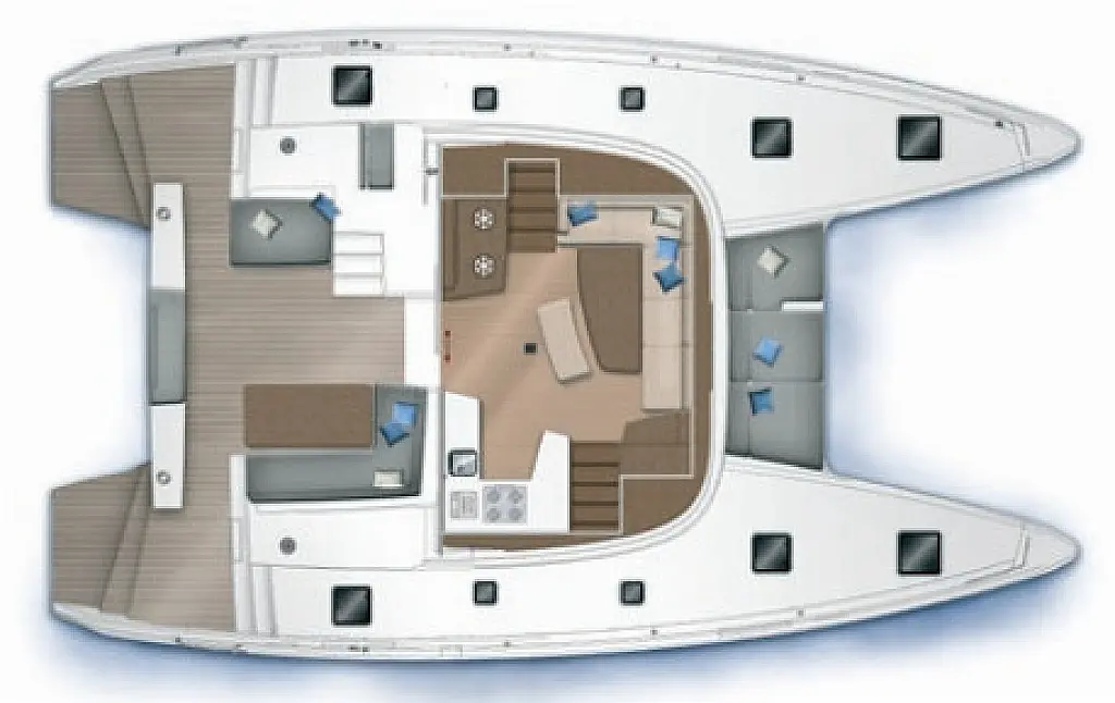 Frigorifero, Barbecue in pozzetto, Bimini, Altoparlanti in pozzetto, Cuscini in pozzetto, Generatore, Sprayhood, Motore fuoribordo, Dissalatore, WC elettrico, Aria condizionata, Riscaldamento
