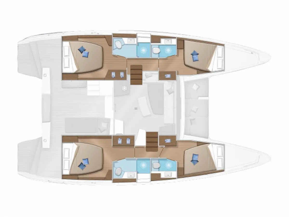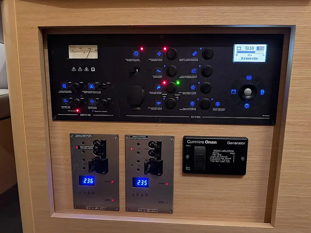 Frigorifero, Aria condizionata, Dissalatore, Inverter, WC elettrico, Tender, Verricelli elettrici, Cuscini in pozzetto