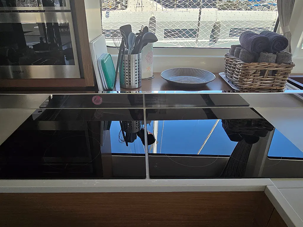 Tender, Macchina da caffè, WC elettrico, Macchina del ghiaccio, Barbecue in pozzetto, Wi-Fi e Internet, Flybridge, Dissalatore, Aria condizionata, Ponte in Teak, Verricelli elettrici, Generatore, Inverter