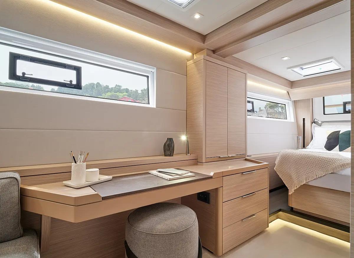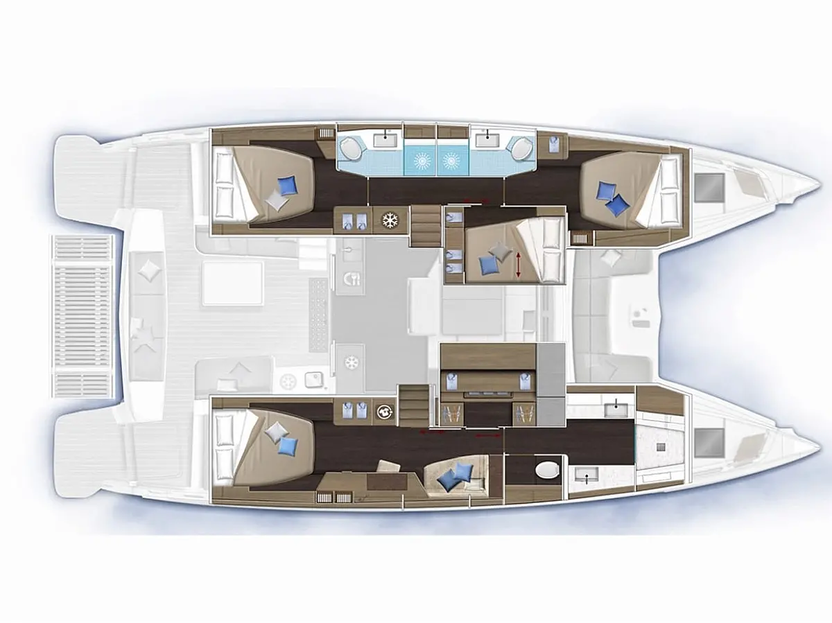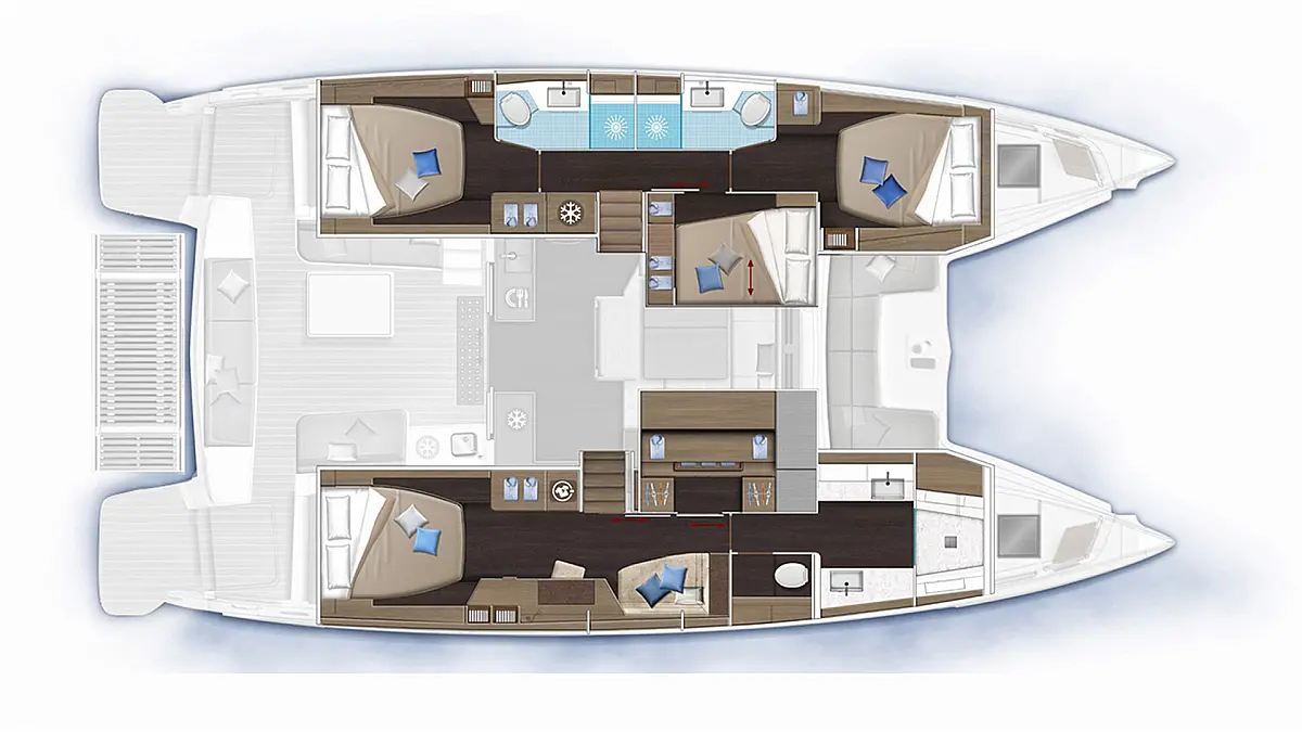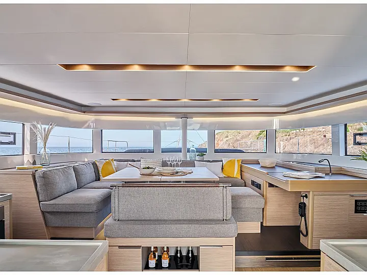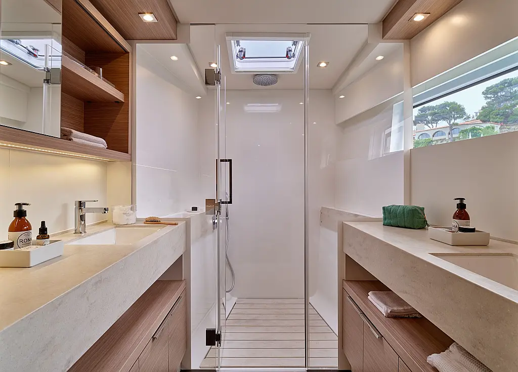Aria condizionata, Generatore, Barbecue in pozzetto, WC elettrico, Passerella idraulica, Piattaforma da bagno, Inverter, Dissalatore, Ponte in Teak, Macchina del ghiaccio