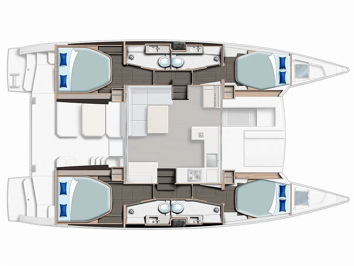 Tender, Inverter, Aria condizionata, Pannelli solari, Frigorifero, WC elettrico, Generatore, Dissalatore, Motore fuoribordo