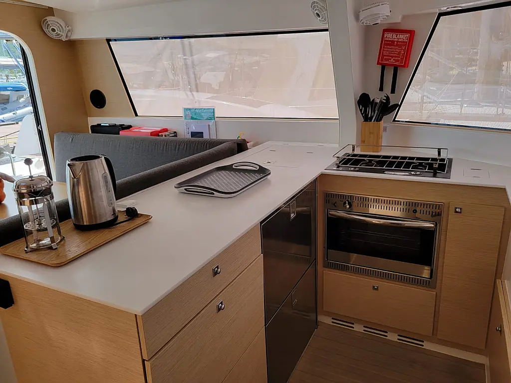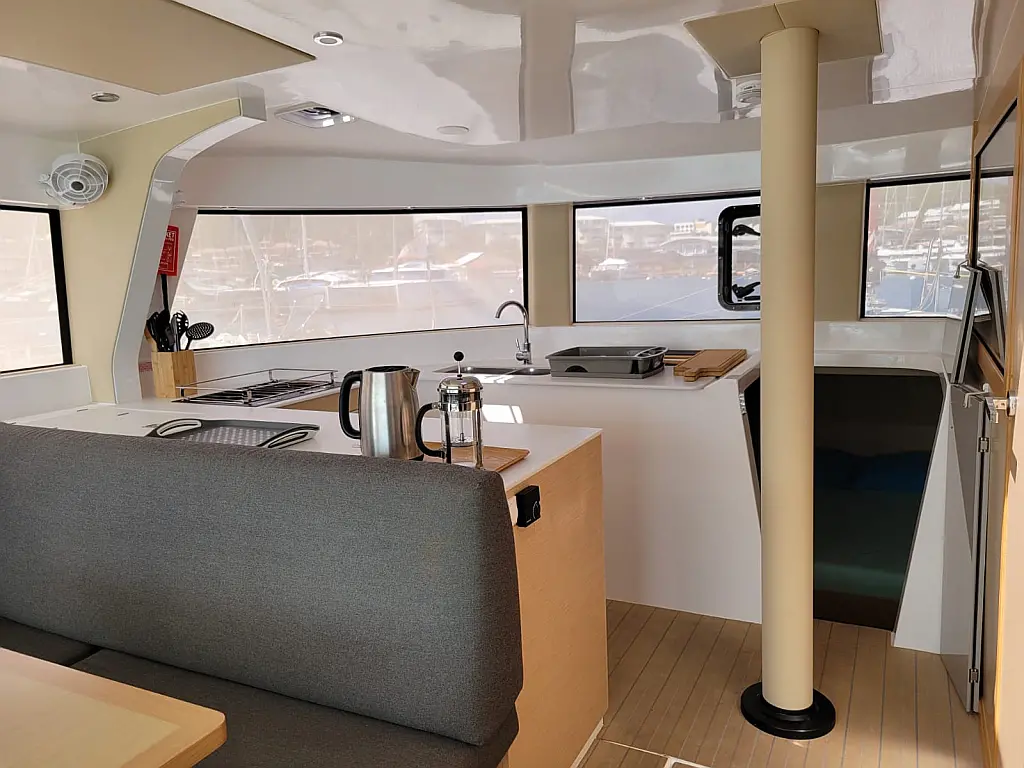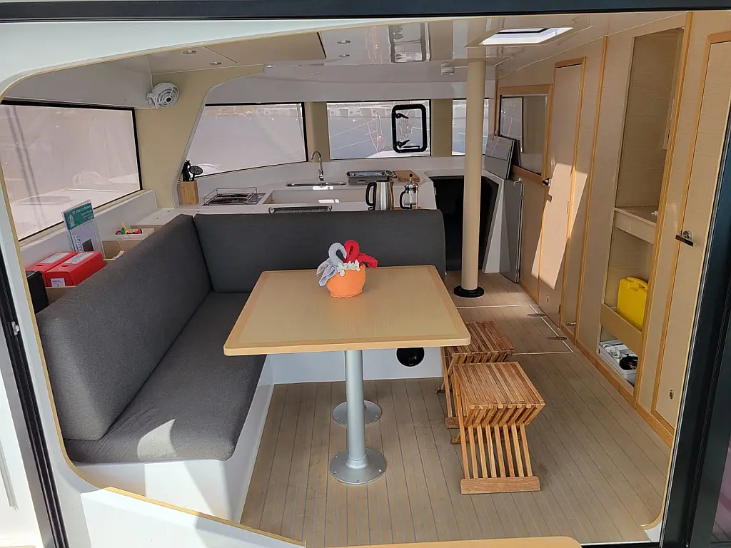 Frigorifero, Pannelli solari, Dissalatore, Bimini, Cuscini in pozzetto, Tender